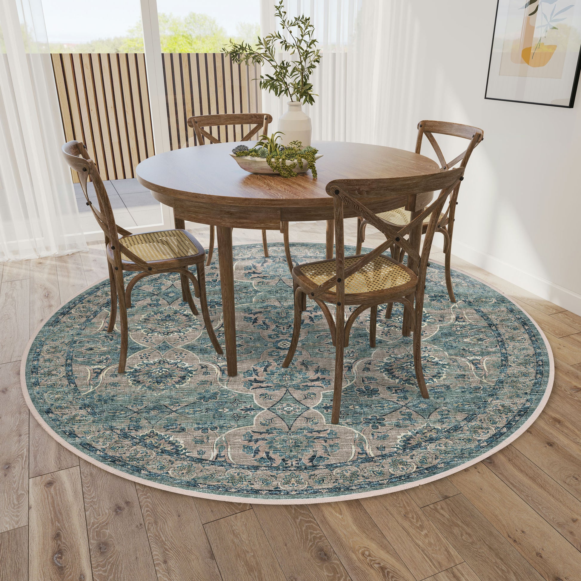Indoor/Outdoor Marbella MB5 Mineral Blue Washable 8' x 8' Round Rug