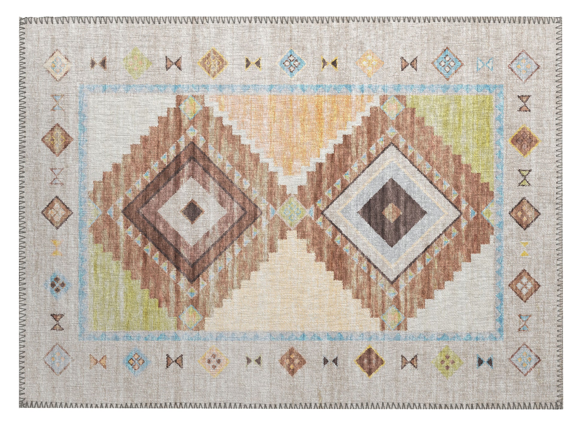Phoenix collection has great casual southwestern lodge feel. Featuring an ultra-soft and ultra thin pile, each rug is made with 100% polyester pile complete with a non-skid backing. Crafted in the USA using Foreign & Domestic materials and US labor. They are UV Stabilized for indoor and cover outdoor spaces. Shake out or use straight suction with vacuum, do not use a beater bar. Machine washable in cold water and air dry, some sizes may be too large for a residential washing machine and is family and pet friendly.