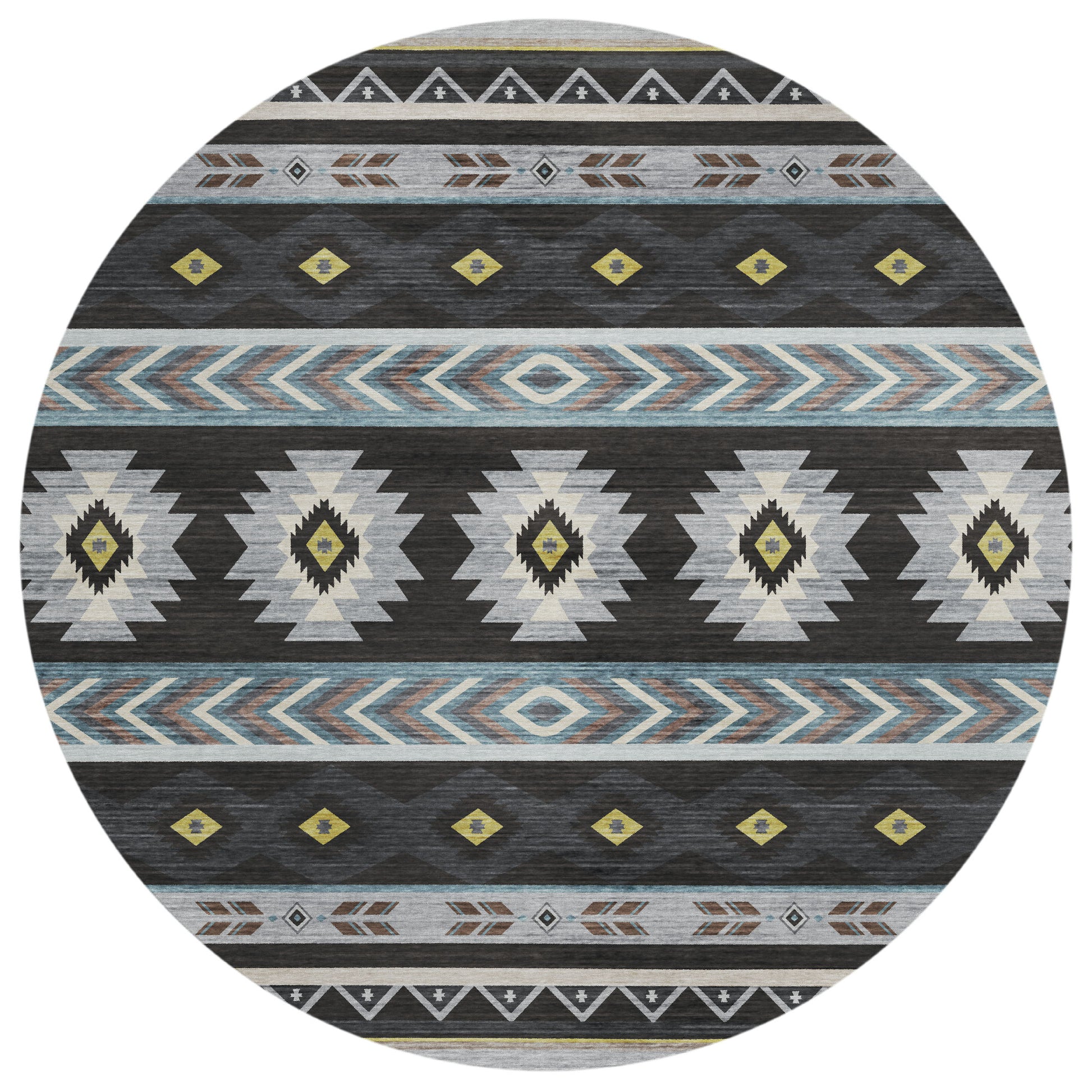 Indoor/Outdoor Phoenix PH3 Black Washable 8' x 8' Round Rug