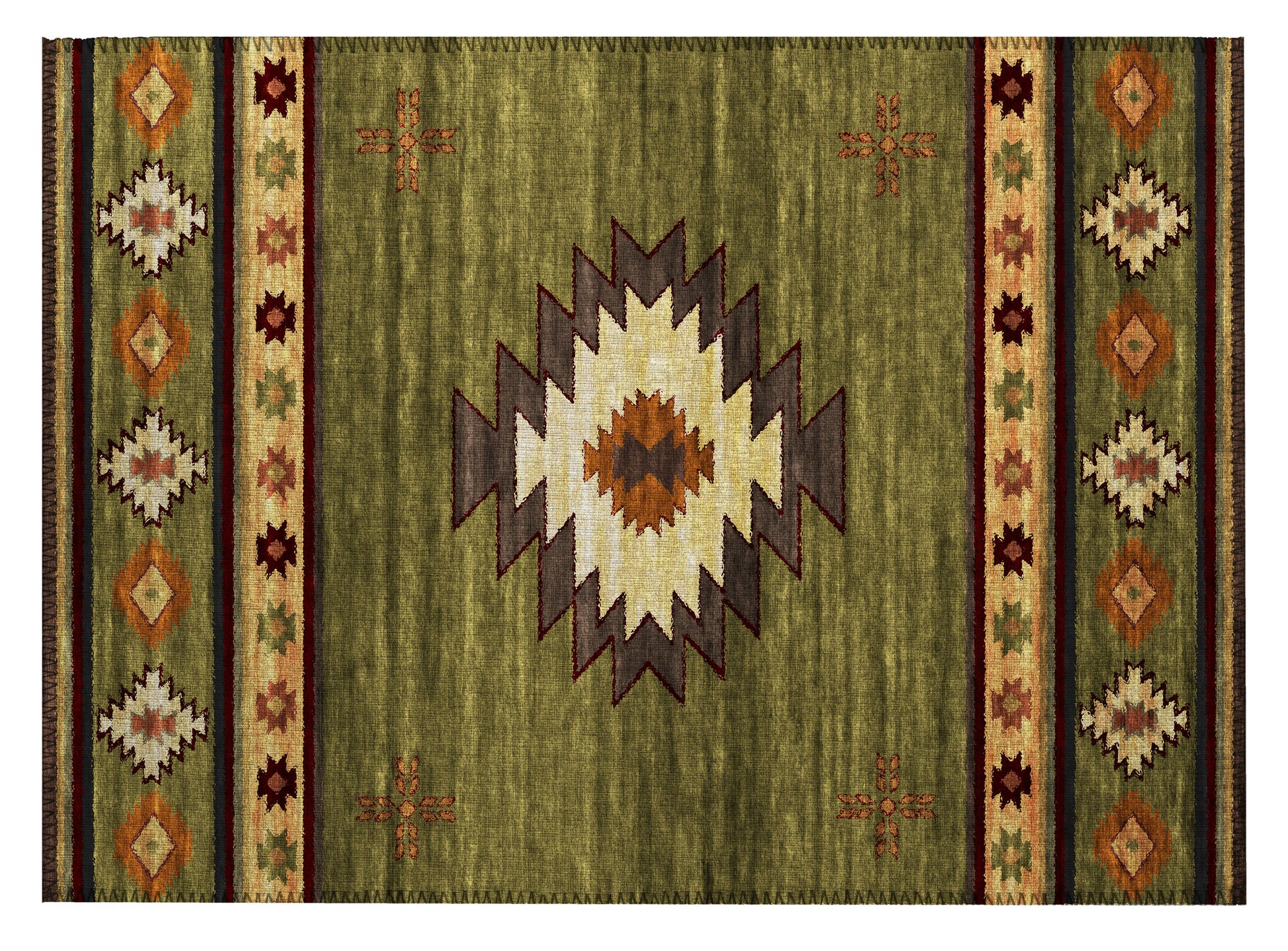 Phoenix collection has great casual southwestern lodge feel. Featuring an ultra-soft and ultra thin pile, each rug is made with 100% polyester pile complete with a non-skid backing. Crafted in the USA using Foreign & Domestic materials and US labor. They are UV Stabilized for indoor and cover outdoor spaces. Shake out or use straight suction with vacuum, do not use a beater bar. Machine washable in cold water and air dry, some sizes may be too large for a residential washing machine and is family and pet friendly.