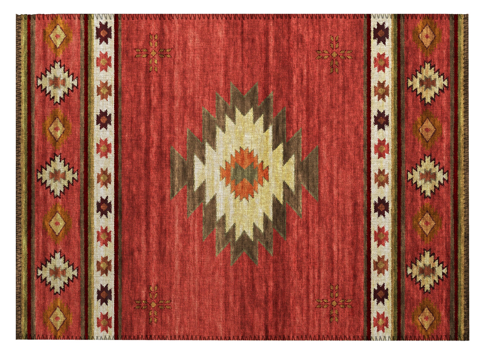Phoenix collection has great casual southwestern lodge feel. Featuring an ultra-soft and ultra thin pile, each rug is made with 100% polyester pile complete with a non-skid backing. Crafted in the USA using Foreign & Domestic materials and US labor. They are UV Stabilized for indoor and cover outdoor spaces. Shake out or use straight suction with vacuum, do not use a beater bar. Machine washable in cold water and air dry, some sizes may be too large for a residential washing machine and is family and pet friendly.
