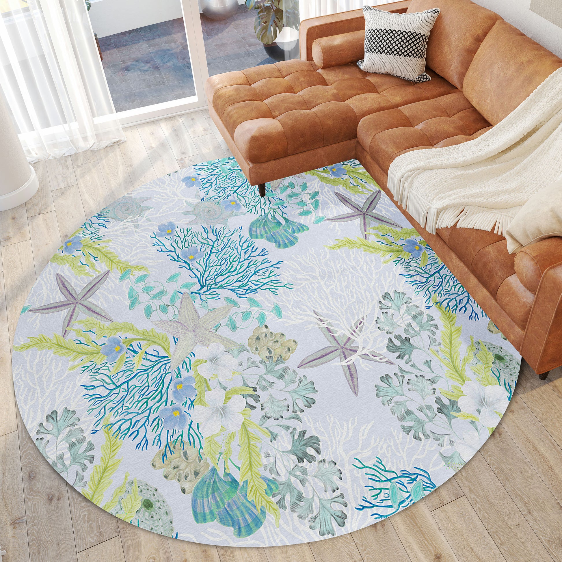 Indoor/Outdoor Seabreeze SZ1 Silver Washable 8' x 8' Round Rug