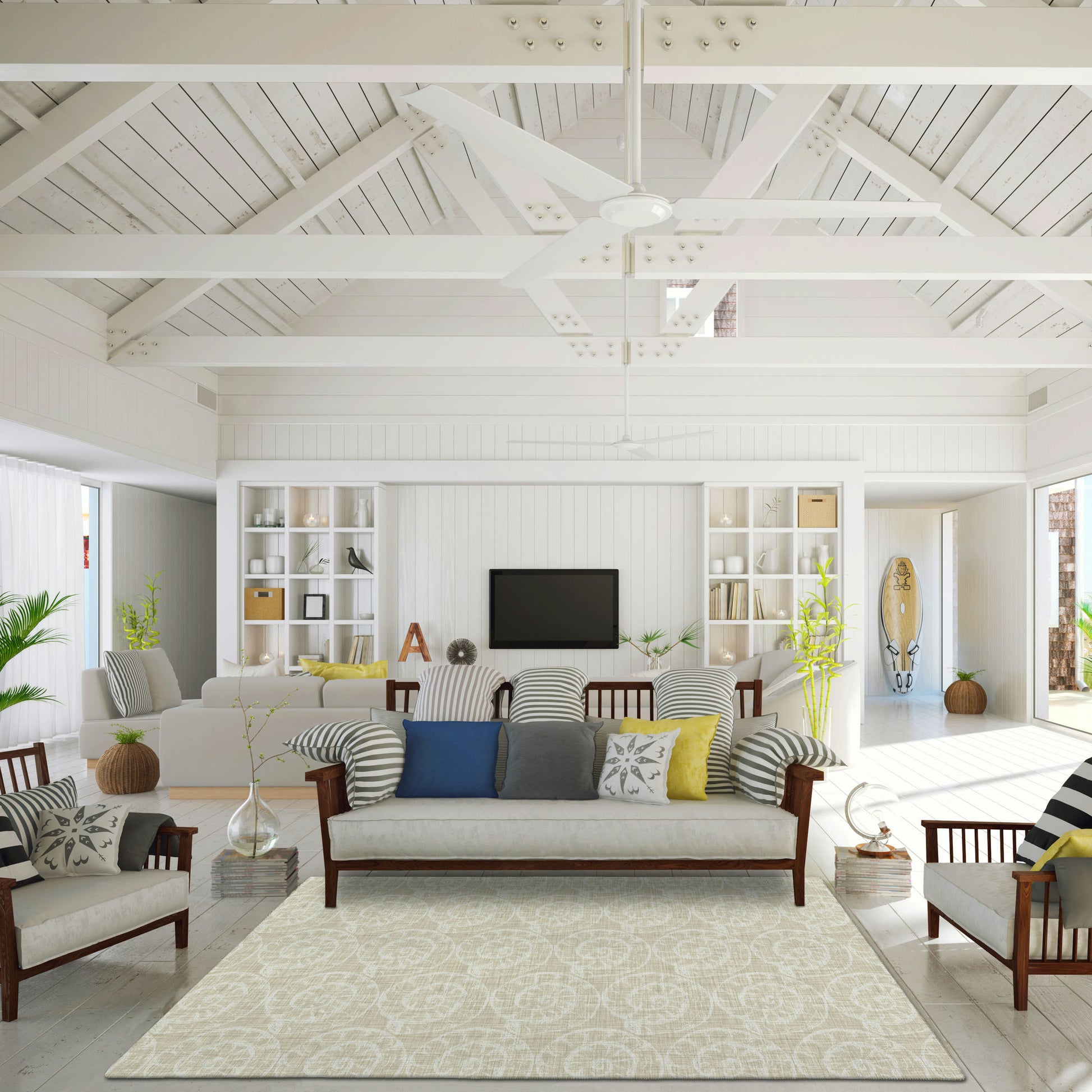 Remarkable Seabreeze collection has been created to inspire tranquility. Wow your guests with these versatile casual coastal rugs, stylish flat weave rug features vibrant colors with gradient movement in a variety of natural beach mosaic shapes and patterns. Featuring an ultra-soft and ultra thin pile, each rug is made with 100% polyester pile complete with a non-skid backing. Crafted in the USA using Foreign & Domestic materials and US labor. They are UV Stabilized for indoor and cover outdoor spaces. Shake out or use straight suction with vacuum, do not use a beater bar. Machine washable in cold water and air dry, some sizes may be too large for a residential washing machine and is family and pet friendly.