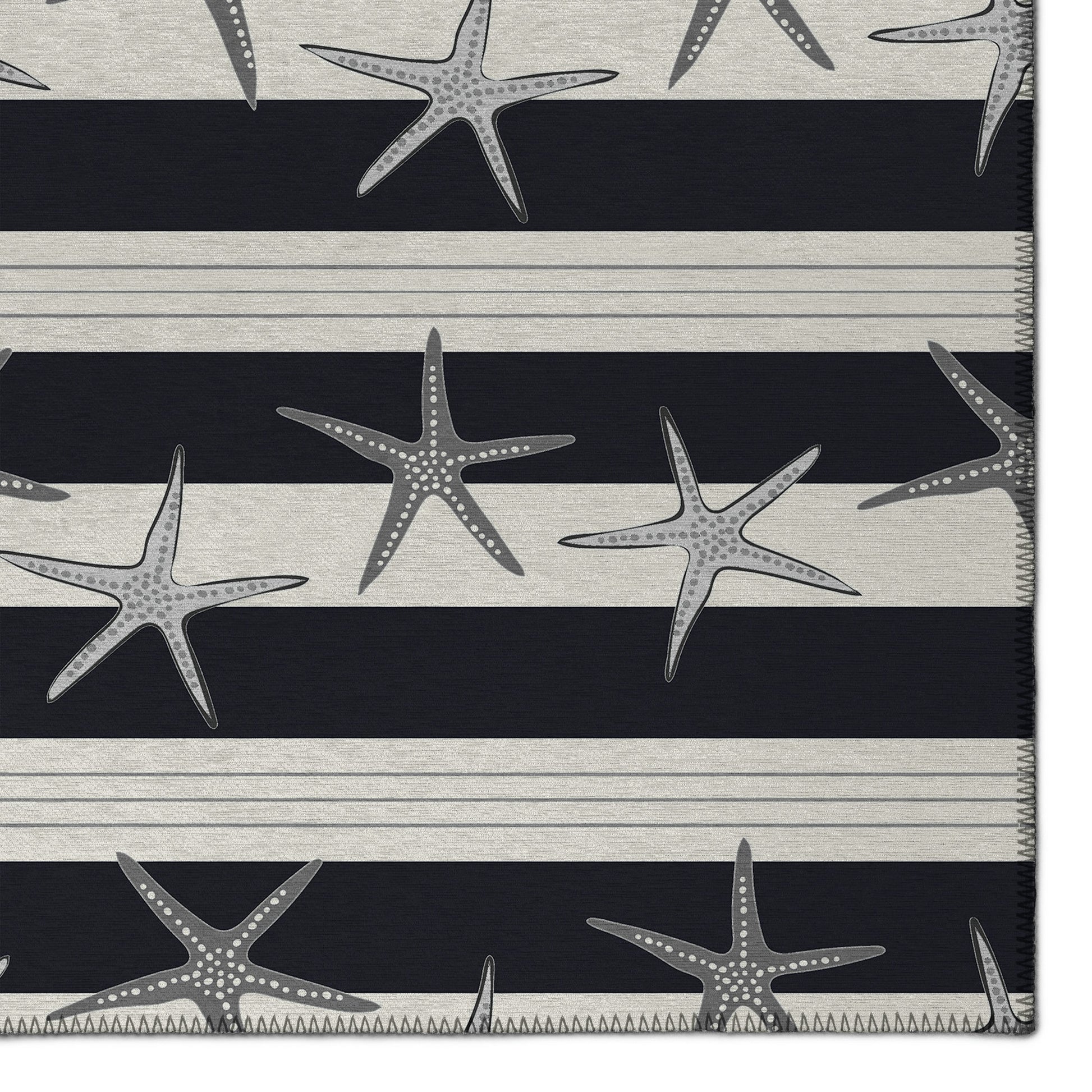 Indoor/Outdoor Seabreeze SZ12 Black Washable 3' x 5' Rug