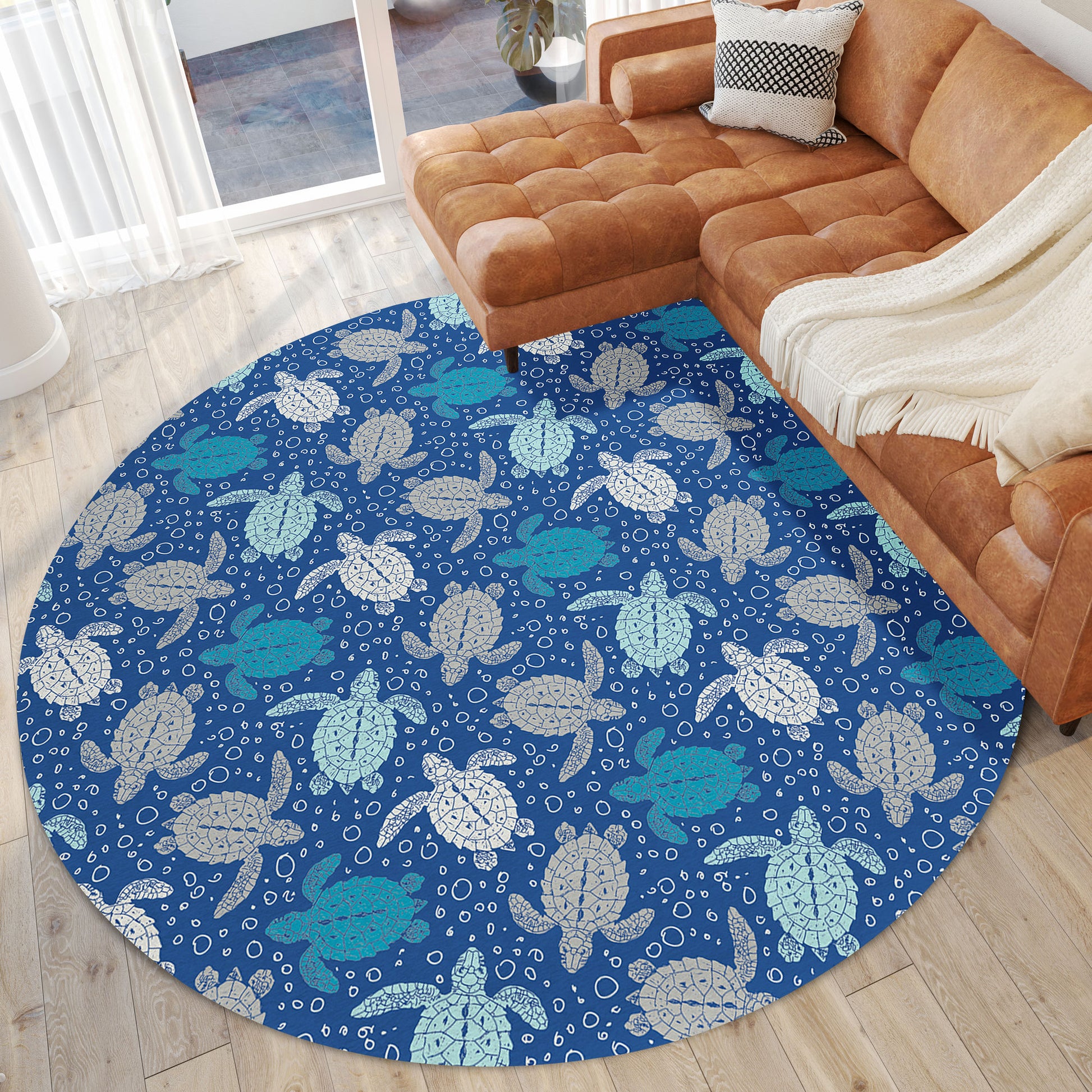 Indoor/Outdoor Seabreeze SZ13 Navy Washable 8' x 8' Round Rug