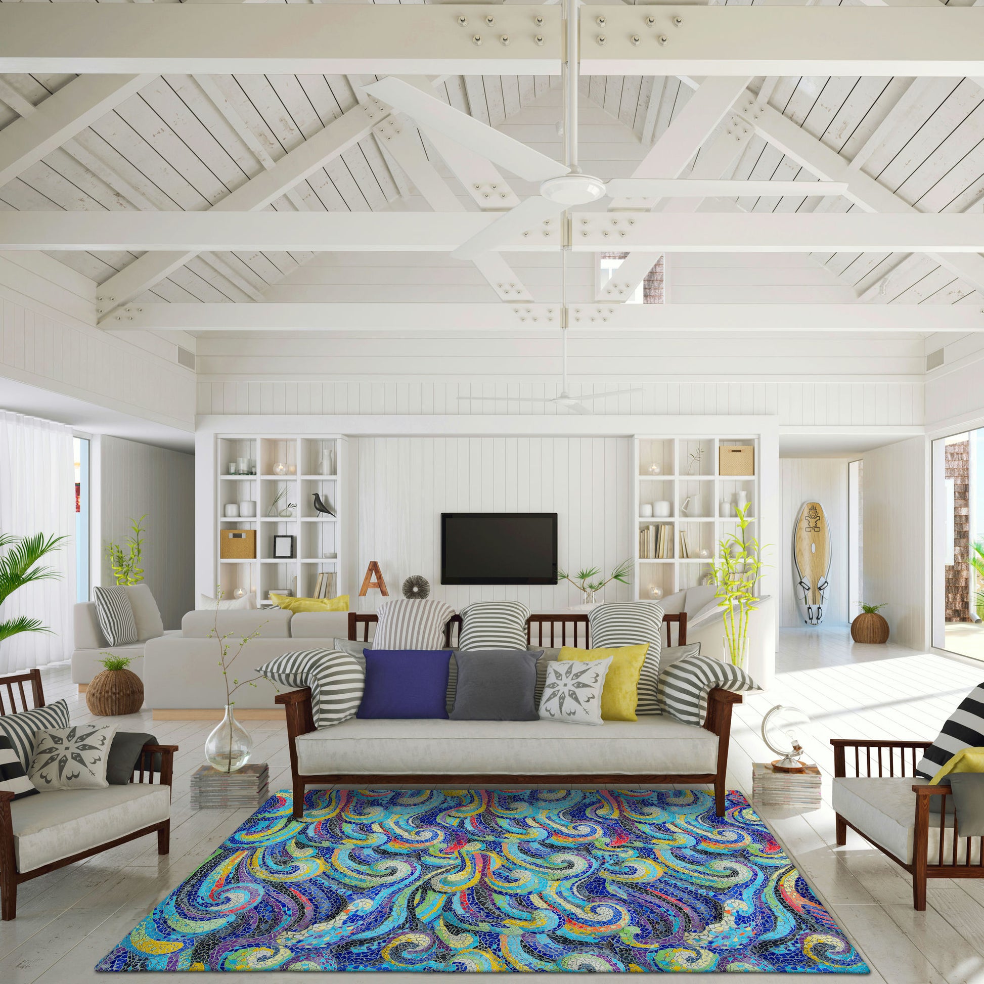 Remarkable Seabreeze collection has been created to inspire tranquility. Wow your guests with these versatile casual coastal rugs, stylish flat weave rug features vibrant colors with gradient movement in a variety of natural beach mosaic shapes and patterns. Featuring an ultra-soft and ultra thin pile, each rug is made with 100% polyester pile complete with a non-skid backing. Crafted in the USA using Foreign & Domestic materials and US labor. They are UV Stabilized for indoor and cover outdoor spaces. Shake out or use straight suction with vacuum, do not use a beater bar. Machine washable in cold water and air dry, some sizes may be too large for a residential washing machine and is family and pet friendly.