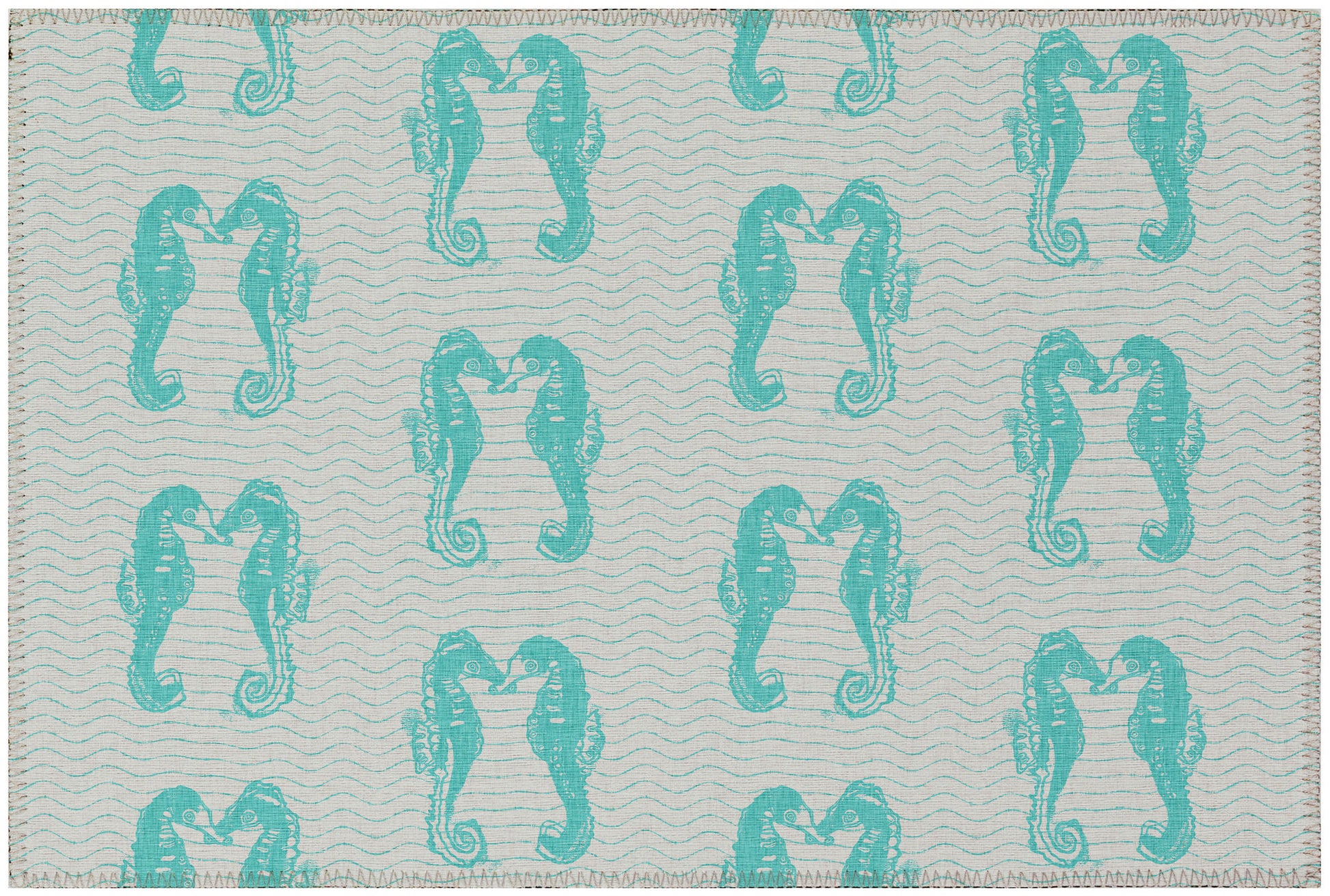 Indoor/Outdoor Seabreeze SZ15 Teal Washable 1'8" x 2'6" Rug