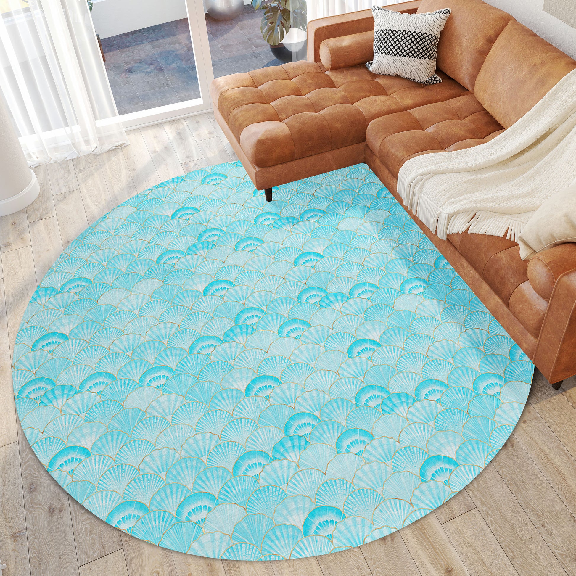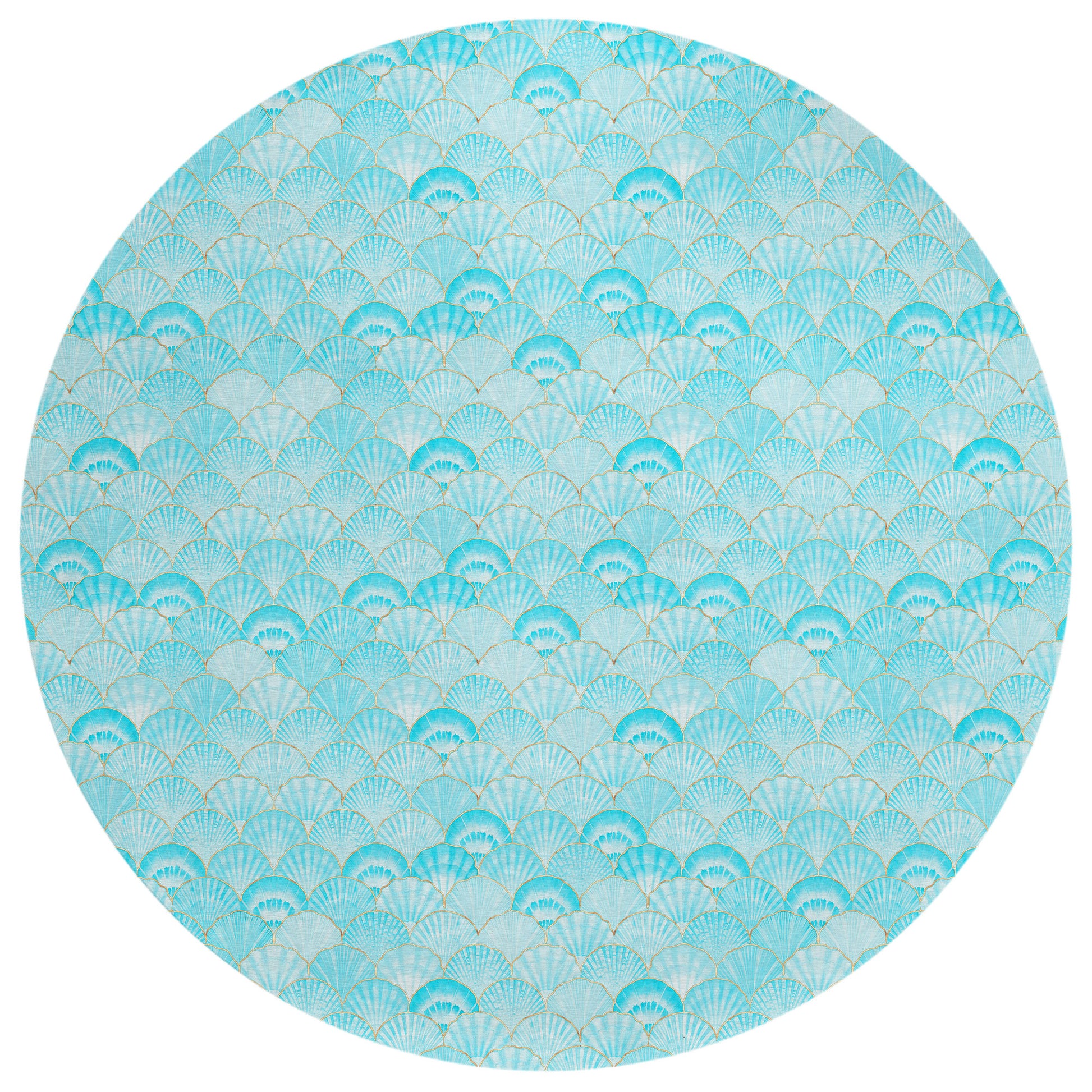 Indoor/Outdoor Seabreeze SZ2 Teal Washable 8' x 8' Round Rug