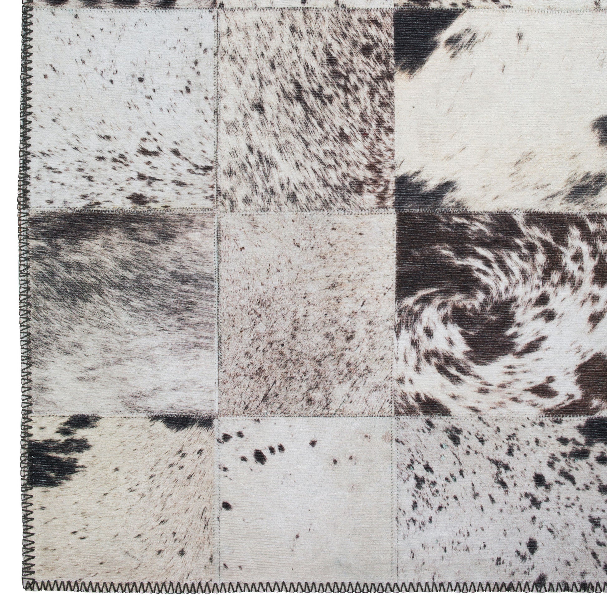 Stetson is a faux hide patchwork collection. The details on these faux hide rugs look so real you will wow your guests. This stylish rug features neutral colors with gradient movement in a variety of mosaic shapes and patterns. UFeaturing an ultra-soft and ultra thin pile, each rug is made with 100% polyester pile complete with a non-skid backing. Crafted in the USA using Foreign & Domestic materials and US labor. They are UV Stabilized for indoor and cover outdoor spaces. Shake out or use straight suction with vacuum, do not use a beater bar. Machine washable in cold water and air dry, some sizes may be too large for a residential washing machine and is family and pet friendly.