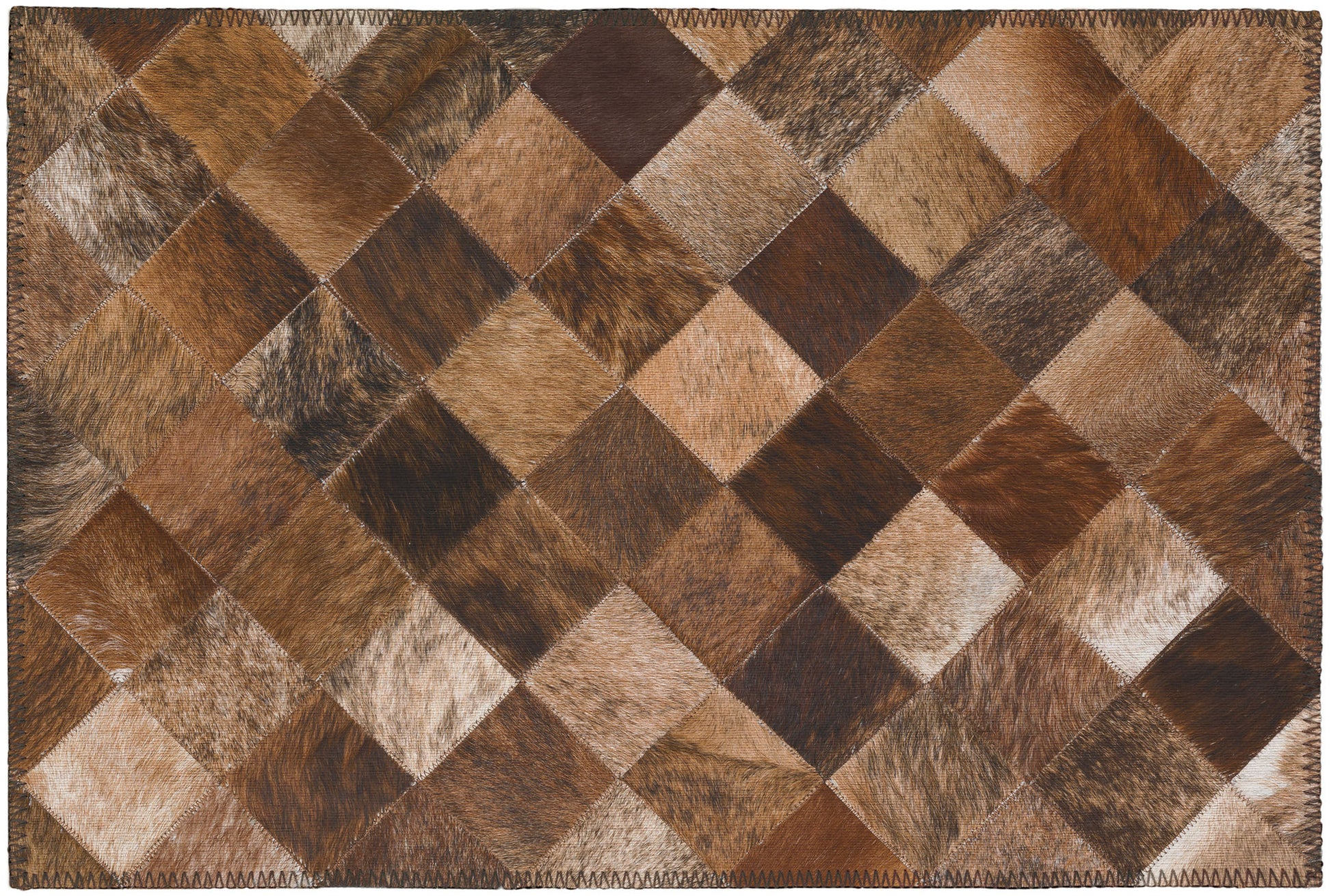 Stetson is a faux hide patchwork collection. The details on these faux hide rugs look so real you will wow your guests. This stylish rug features neutral colors with gradient movement in a variety of mosaic shapes and patterns. UFeaturing an ultra-soft and ultra thin pile, each rug is made with 100% polyester pile complete with a non-skid backing. Crafted in the USA using Foreign & Domestic materials and US labor. They are UV Stabilized for indoor and cover outdoor spaces. Shake out or use straight suction with vacuum, do not use a beater bar. Machine washable in cold water and air dry, some sizes may be too large for a residential washing machine and is family and pet friendly.