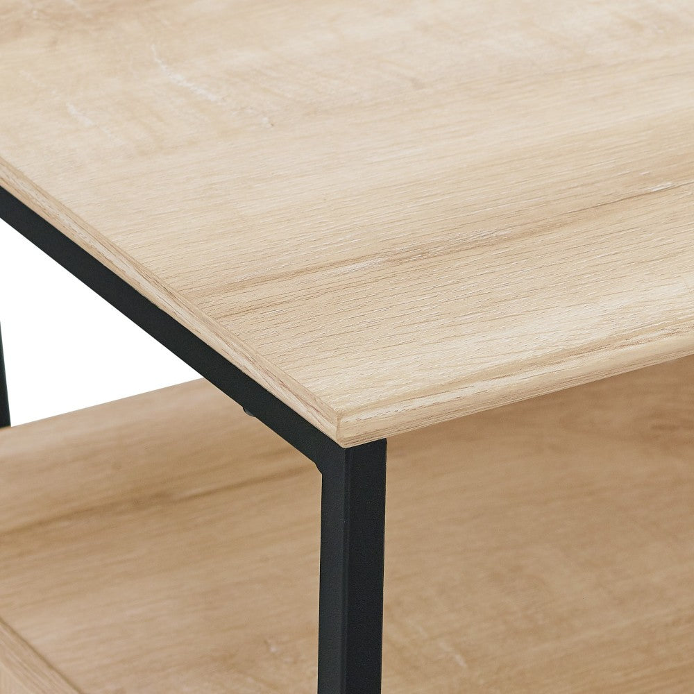 Whether you accent this piece with a steaming side of mashed potatoes come dinner time, or display dining room decor on its sleek tabletop, this mixed material buffet will add warmth to any corner. Craft a graceful space in the most-frequented spot of your dining room, entryway, or sitting area to enjoy the farmhouse appeal of its white oak finish. The contrast of a steel frame against the wood will instantly modernize your space, while keeping an old world charm with its highboy design and faux drawer front. A wooden door conceals an adjustable shelf, where you can organize your favorite stash of cereal bowls or cookbooks. Showcase your china behind tempered safety glass doors, or use the open storage cubby to keep serving dishes close at hand and on display.