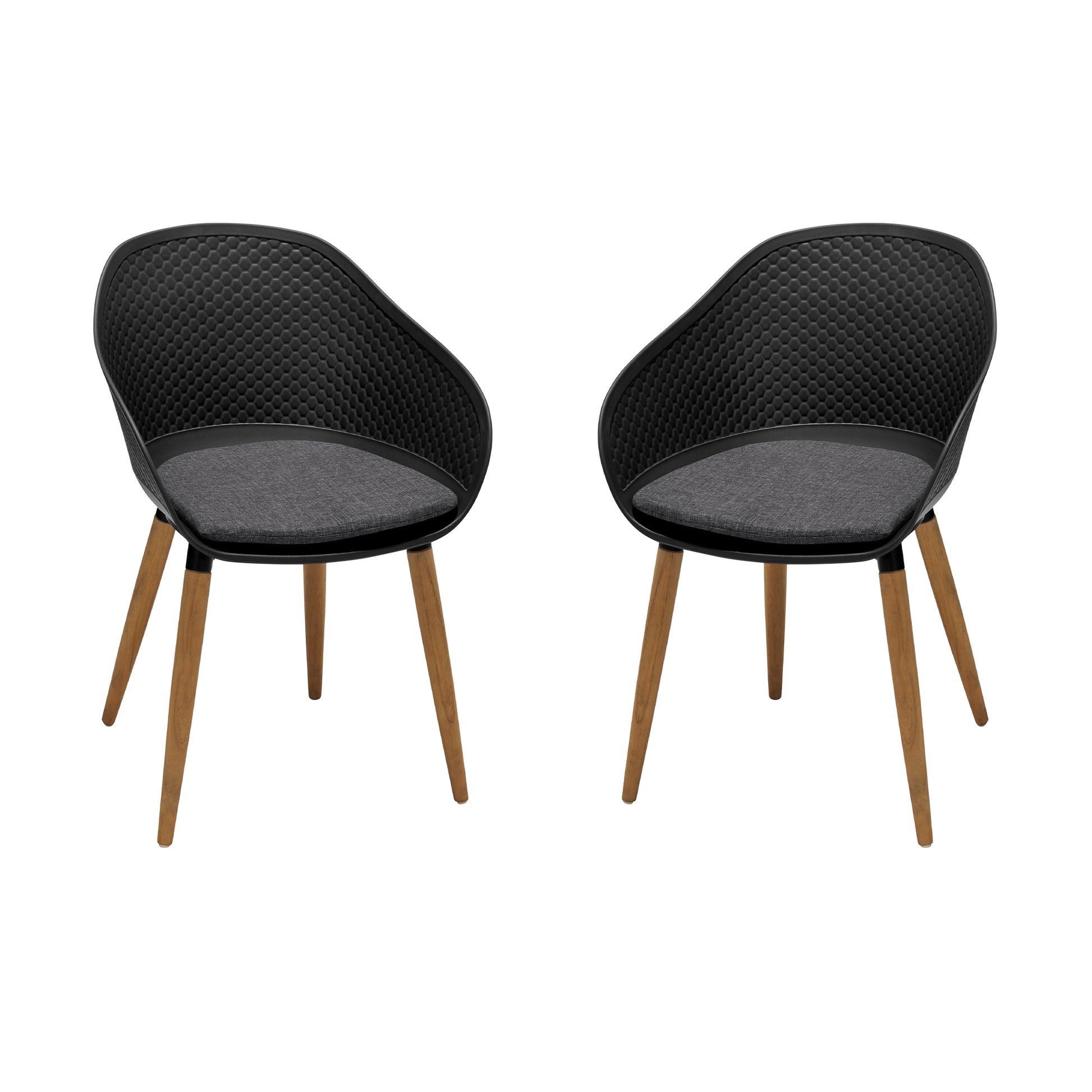 Bring the Ipanema Outdoor Dining Chair with Teak Legs and Dark Grey Olefin - Set of 2 from Armen Living into your outdoor or indoor living space to complete the look you have always wanted. The ergonomic chair back of the Ipanema helps your back maintain the best position possible. The plastic seat is comprised from 100% virgin polypropylene and contains no harmful chemicals and can be recycled without producing waste or damaging the environment. The Ipanema dining chair features a removable cushion upholstered in olefin fabric which maintains multiple properties including abrasion, stain, sunlight, fire, and chemical resistance - perfect for leaving outside! This contemporary chair is primarily designed for outdoor purposes but can also be used indoors giving your home a modern touch. These chairs are sold as a pair and can be combined with the Ipanema Outdoor Aluminum Dining Table in Dark Grey with Natural Teak Wood Accent from the same collection! Product Dimensions: W:22 x D:21 x H:32 x SH:17