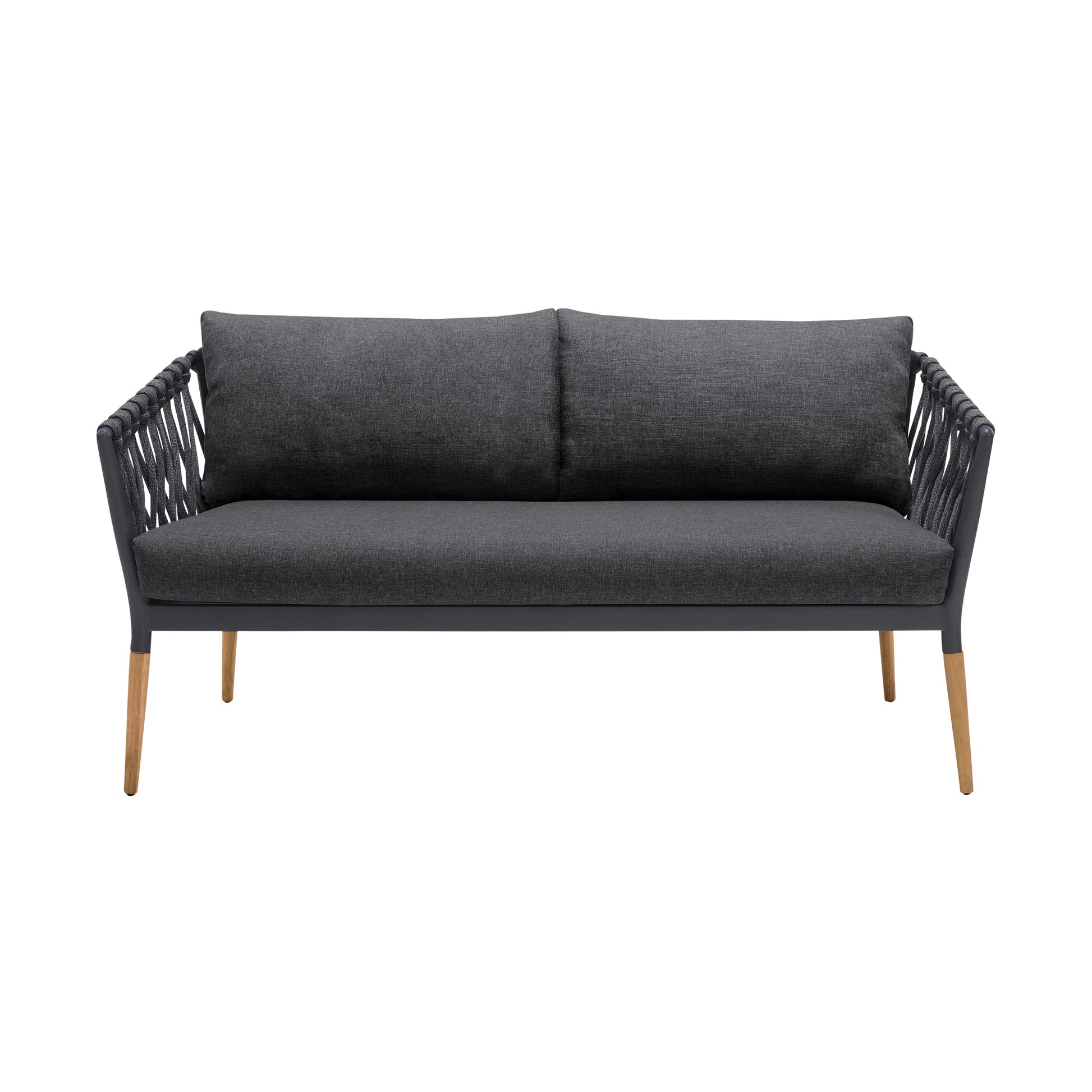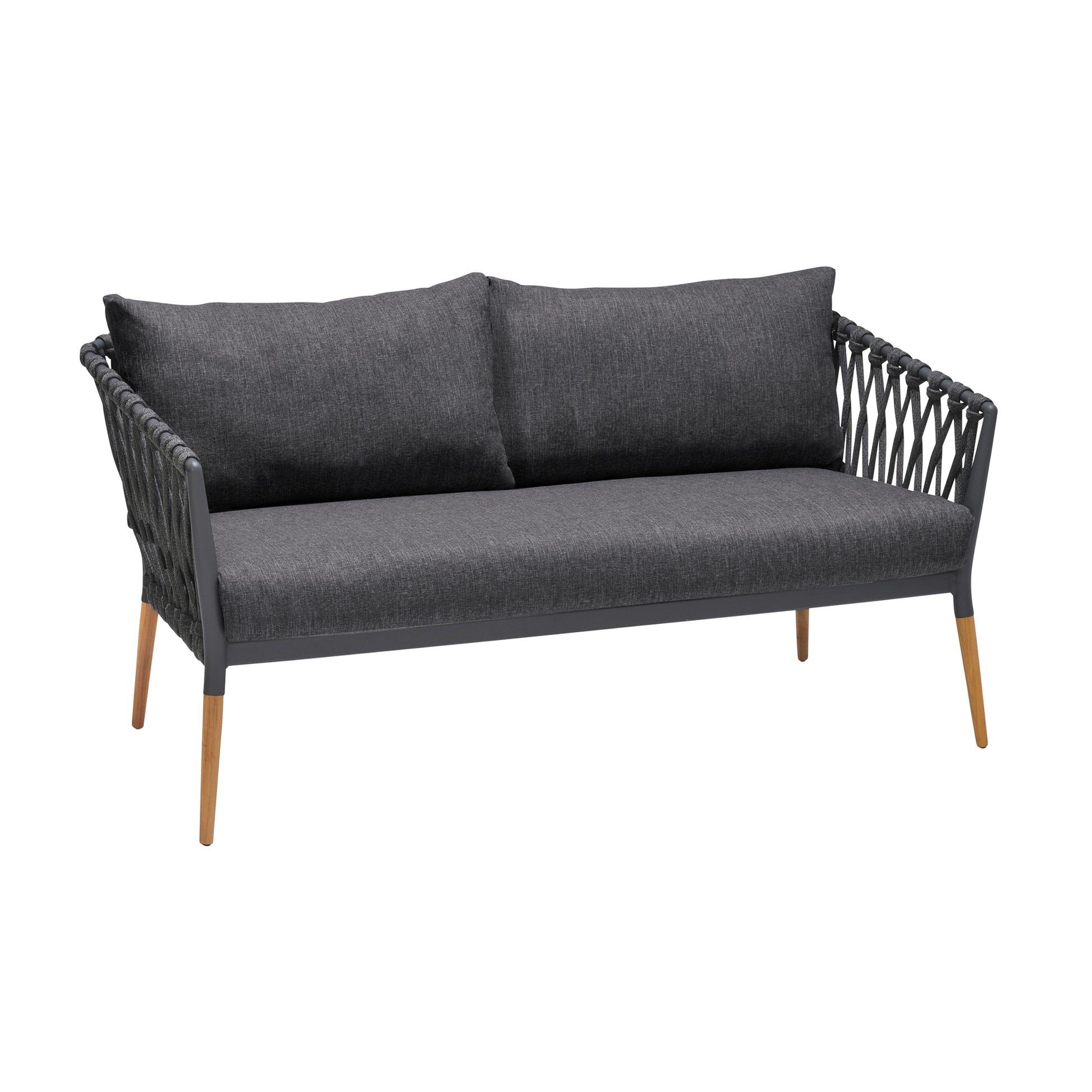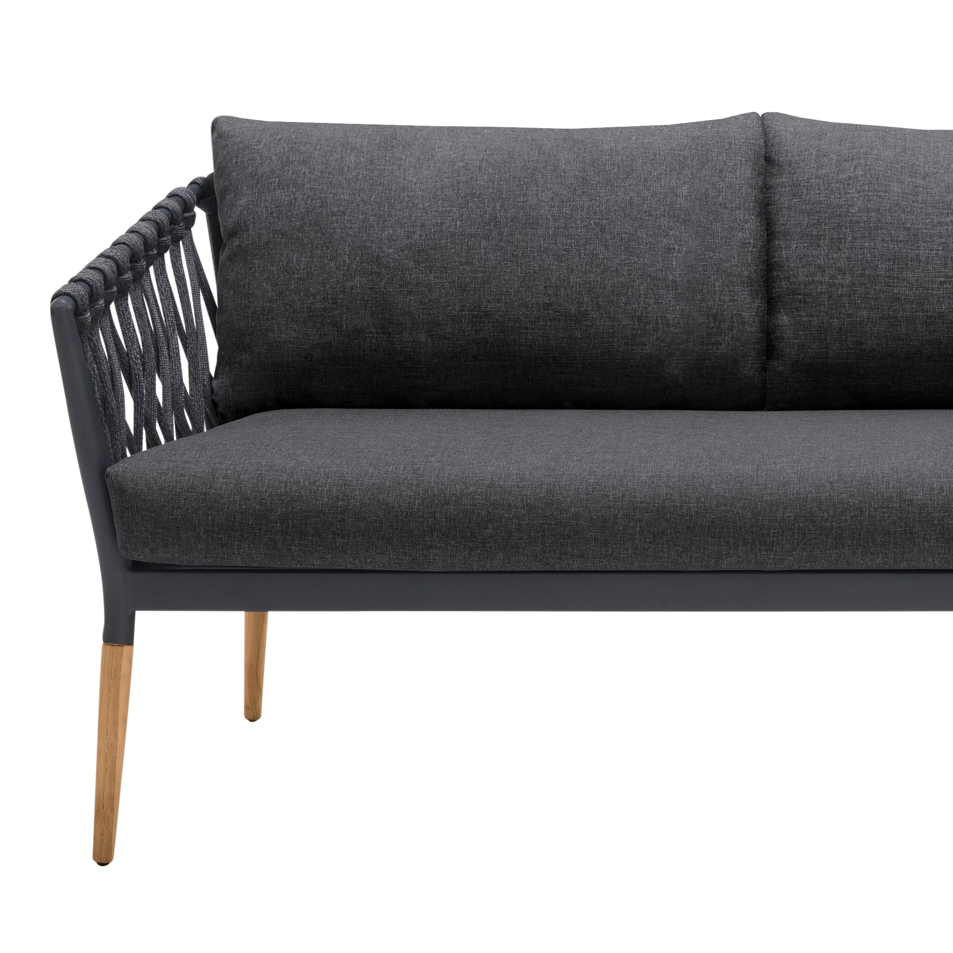 Ipanema Outdoor Teak Wood and Rope Sofa with Dark Grey Olefin