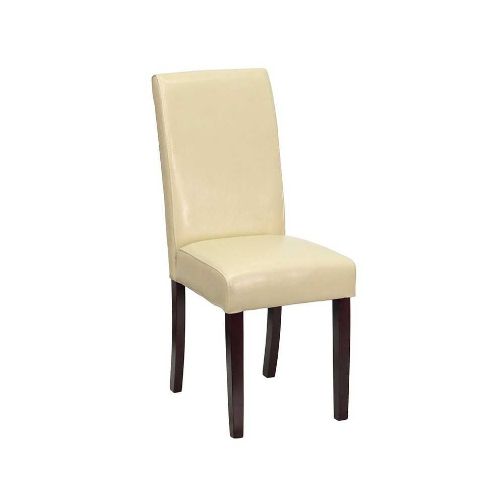 The classic design of this ivory LeatherSoft upholstered parsons chair makes it a versatile seating option for your home. Sleek lined panel stitching and a mahogany frame finish make them beautiful while high density foam padding and solid hardwood frame construction make them comfortable and durable. Parsons chairs are versatile and can be used not only in the dining room and kitchen but also as a reading chair or extra seating in the living room. The armless design gives the illusion of space which makes them great for small spaces. Make quick work of spills with a water based cleaner. Skirted chair covers can be used to soften their lines for living rooms and bedrooms. A parsons chair can be both formal or casual and are designed to go with almost any decor. [BT-350-IVORY-050-GG]