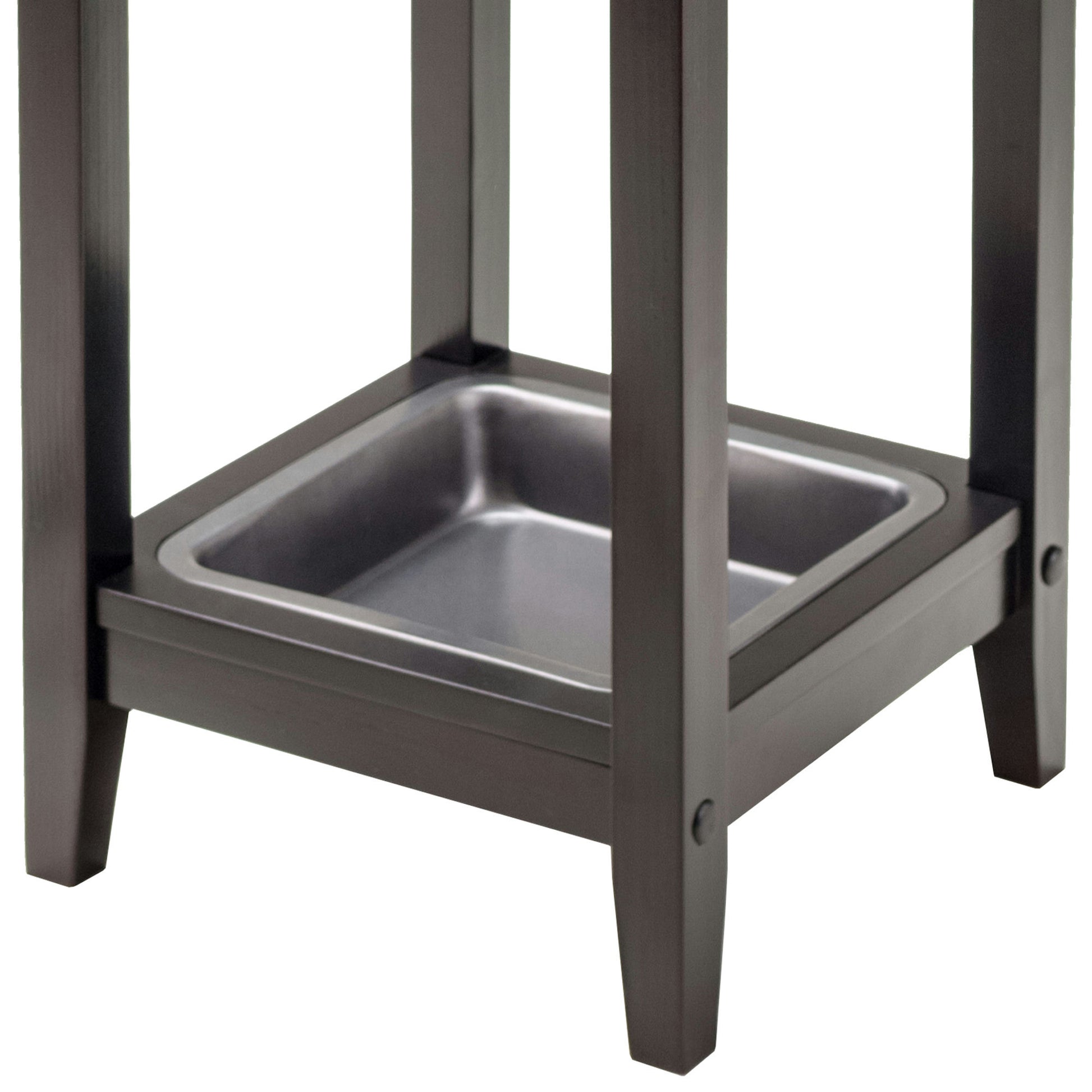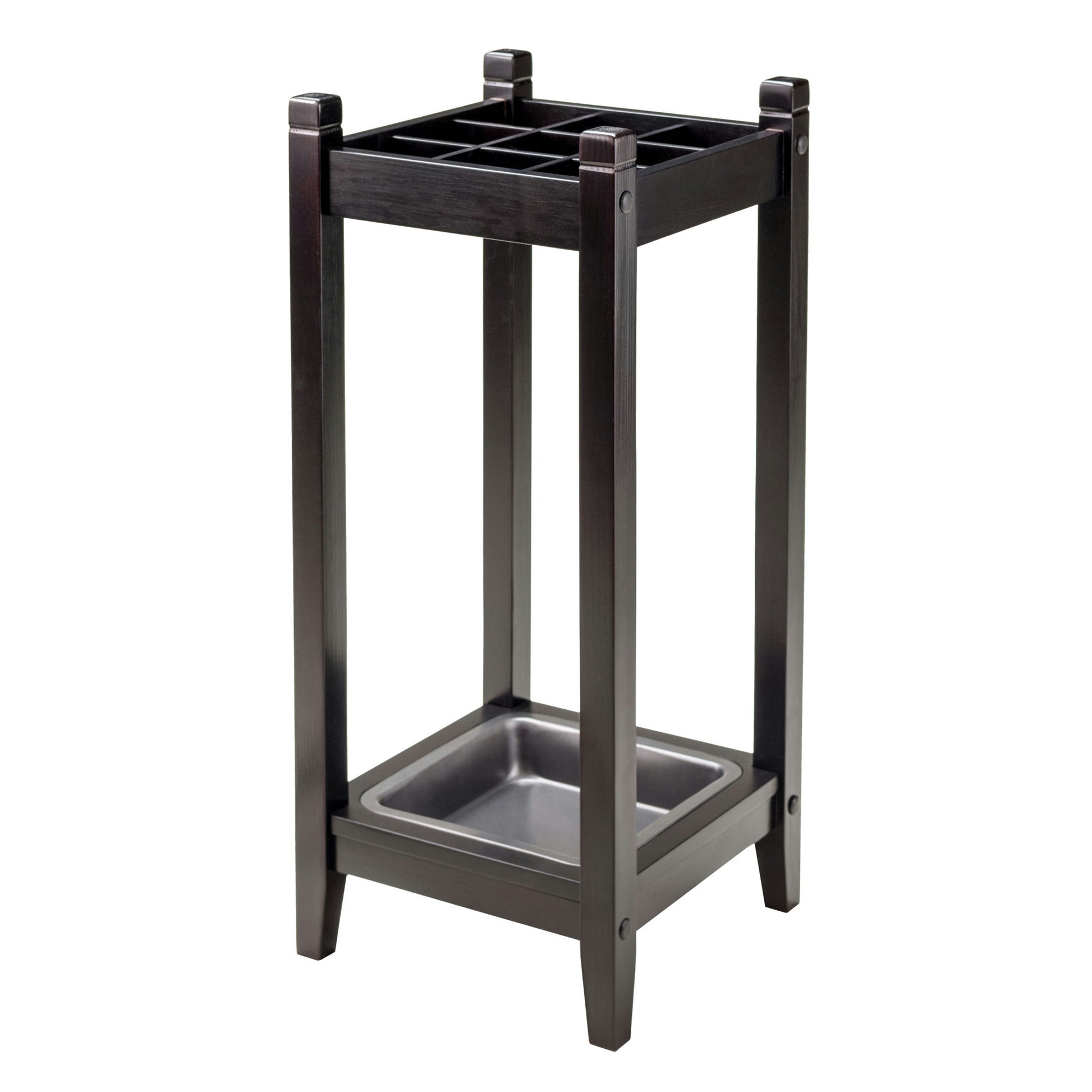 The Jana Umbrella Stand is an excellent addition to your entryway or mudroom with its open frame design made of solid wood with espresso finish which features a steel drip-pan to catch excess water and a grid to store up to 9 umbrellas.