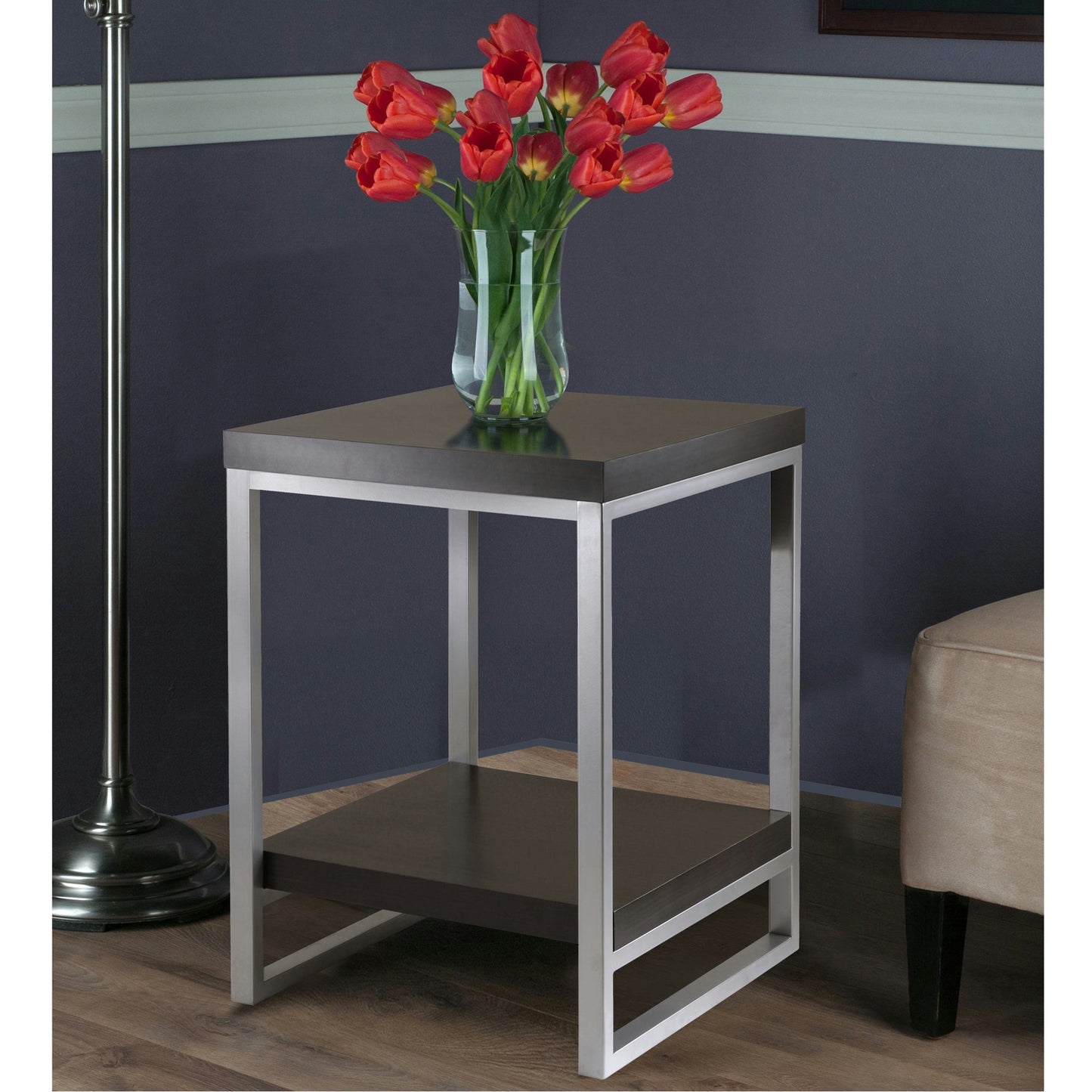 Jared End Table, Gray and Espresso