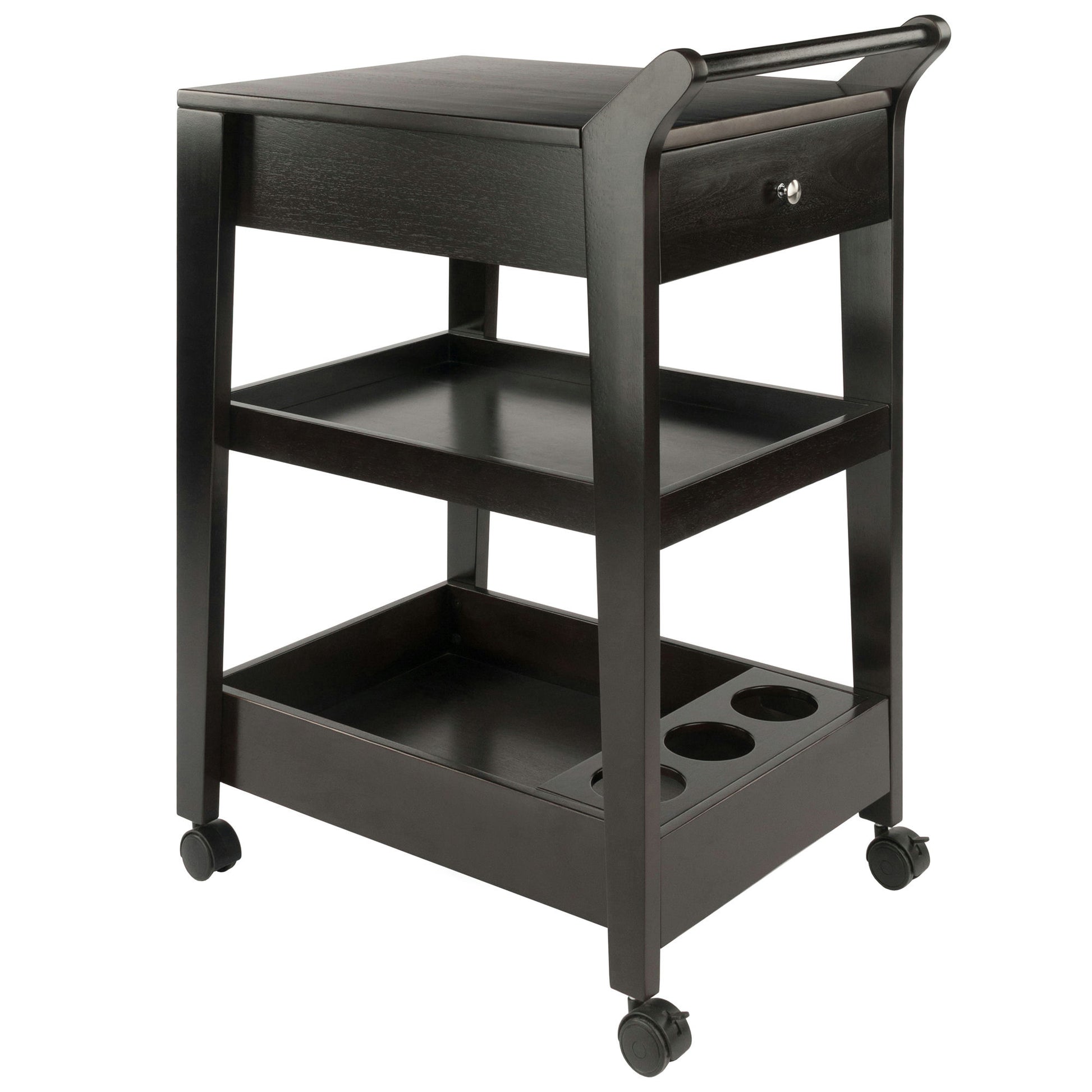 The Jeston Entertainment Cart is the perfect addition to any get together or for simply making a Sunday brunch a little more special. An adjustable or removable middle shelf can double as a serving tray. A lower shelf with removable wine grid, two drawers, and professional grade casters all make serving drinks, hors d-oeuvres, even a meal, easy and stylish. Finished in a rich Espresso.