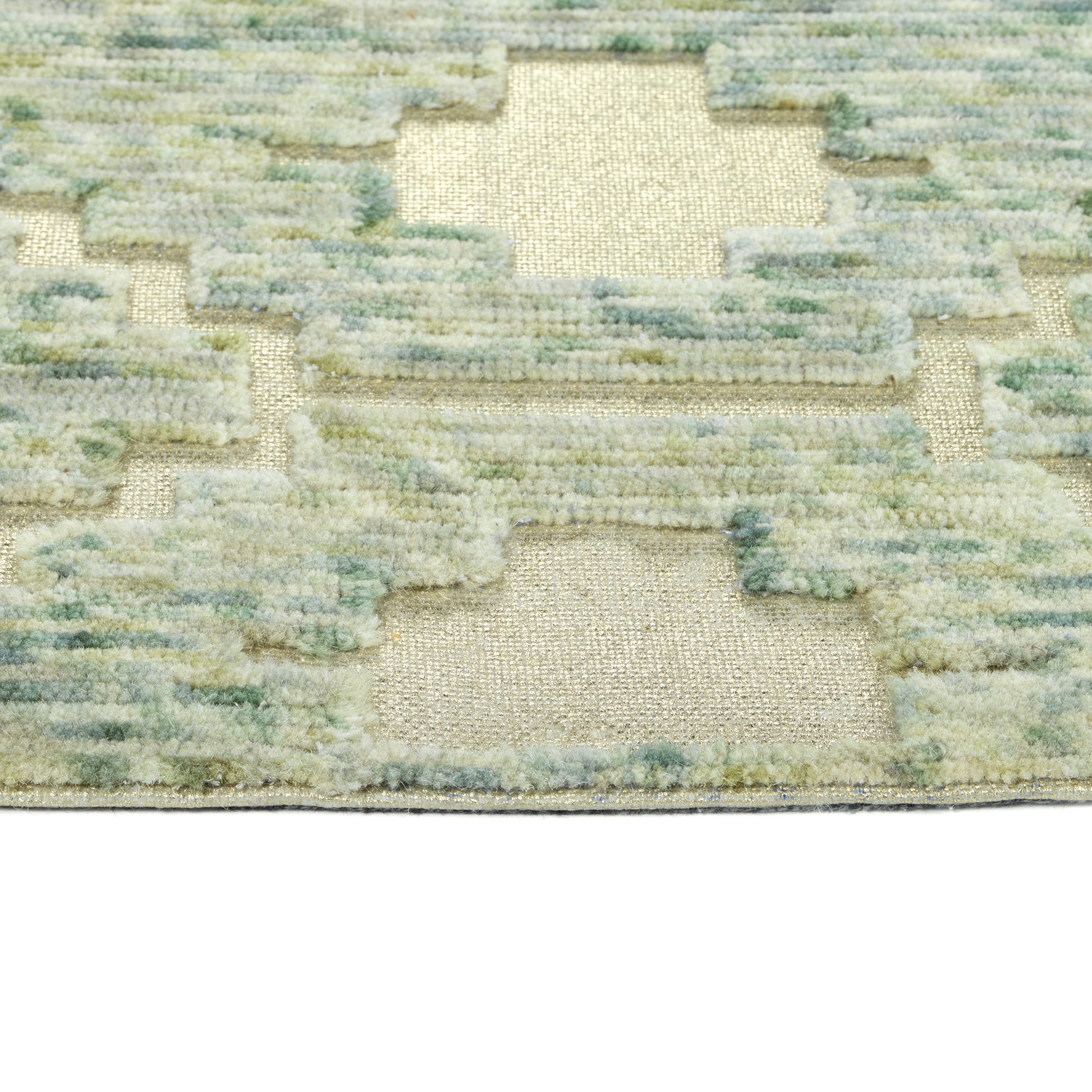 Inspired from the runways of Milan, the Radiance Collection features edgy metallic elements mixed with high-fashion colors and luxurious materials. Hand-tufted and made from 100% wool, each of these designs feature a silver or gold metallic printed foil base and a low pile. Every design is then hand carved by Kaleen artisans to create truly unique textures. Each rug is then serged by hand and backed with Kaleen’s signature cotton canvas. Kaleen’s hand-tufted rugs are made using 100% wool. Due to their thick piles and the way they are constructed, hand-tufted rugs are great to use in heavy traffic areas and will provide beauty for many years to come.