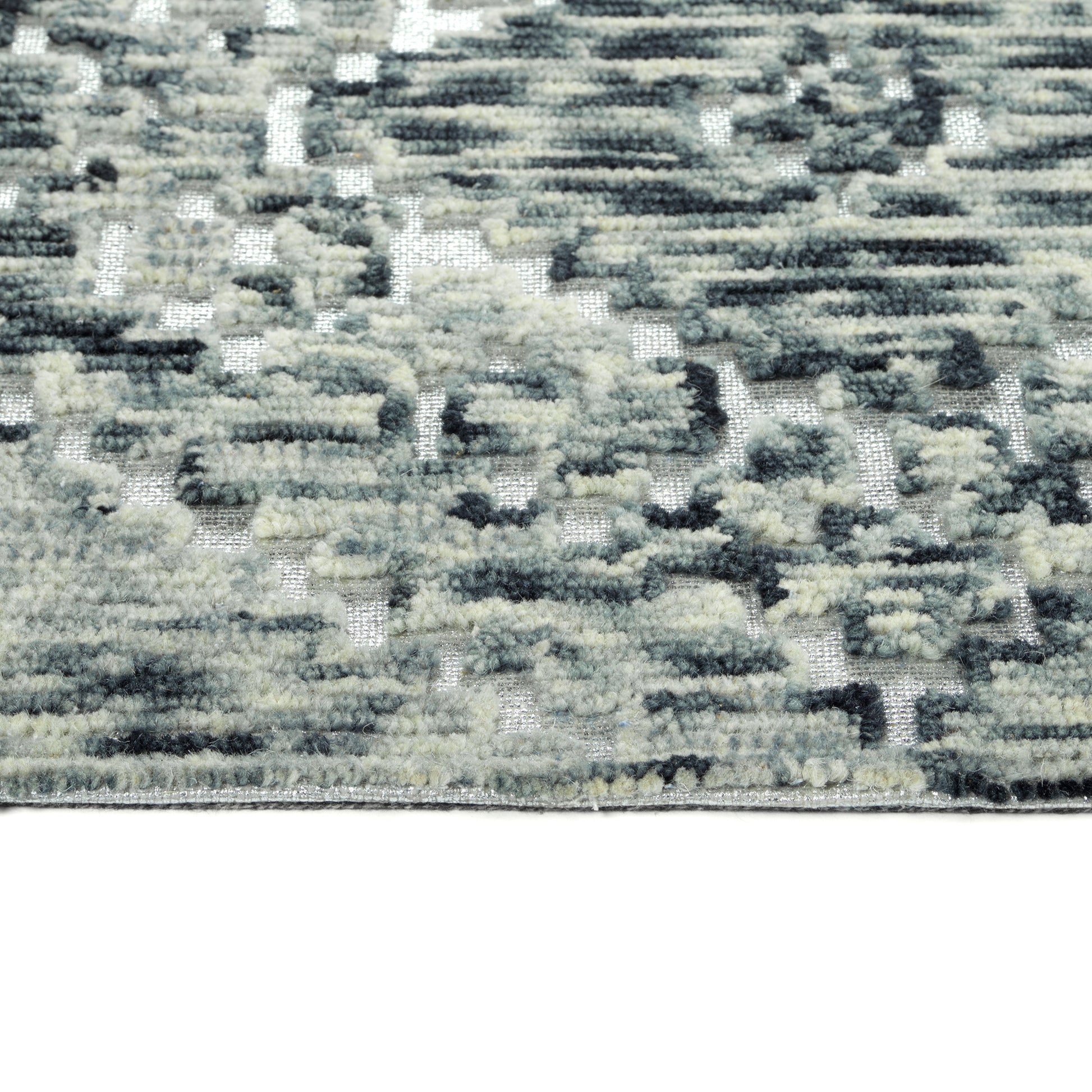 Inspired from the runways of Milan, the Radiance Collection features edgy metallic elements mixed with high-fashion colors and luxurious materials. Hand-tufted and made from 100% wool, each of these designs feature a silver or gold metallic printed foil base and a low pile. Every design is then hand carved by Kaleen artisans to create truly unique textures. Each rug is then serged by hand and backed with Kaleen’s signature cotton canvas. Kaleen’s hand-tufted rugs are made using 100% wool. Due to their thick piles and the way they are constructed, hand-tufted rugs are great to use in heavy traffic areas and will provide beauty for many years to come.