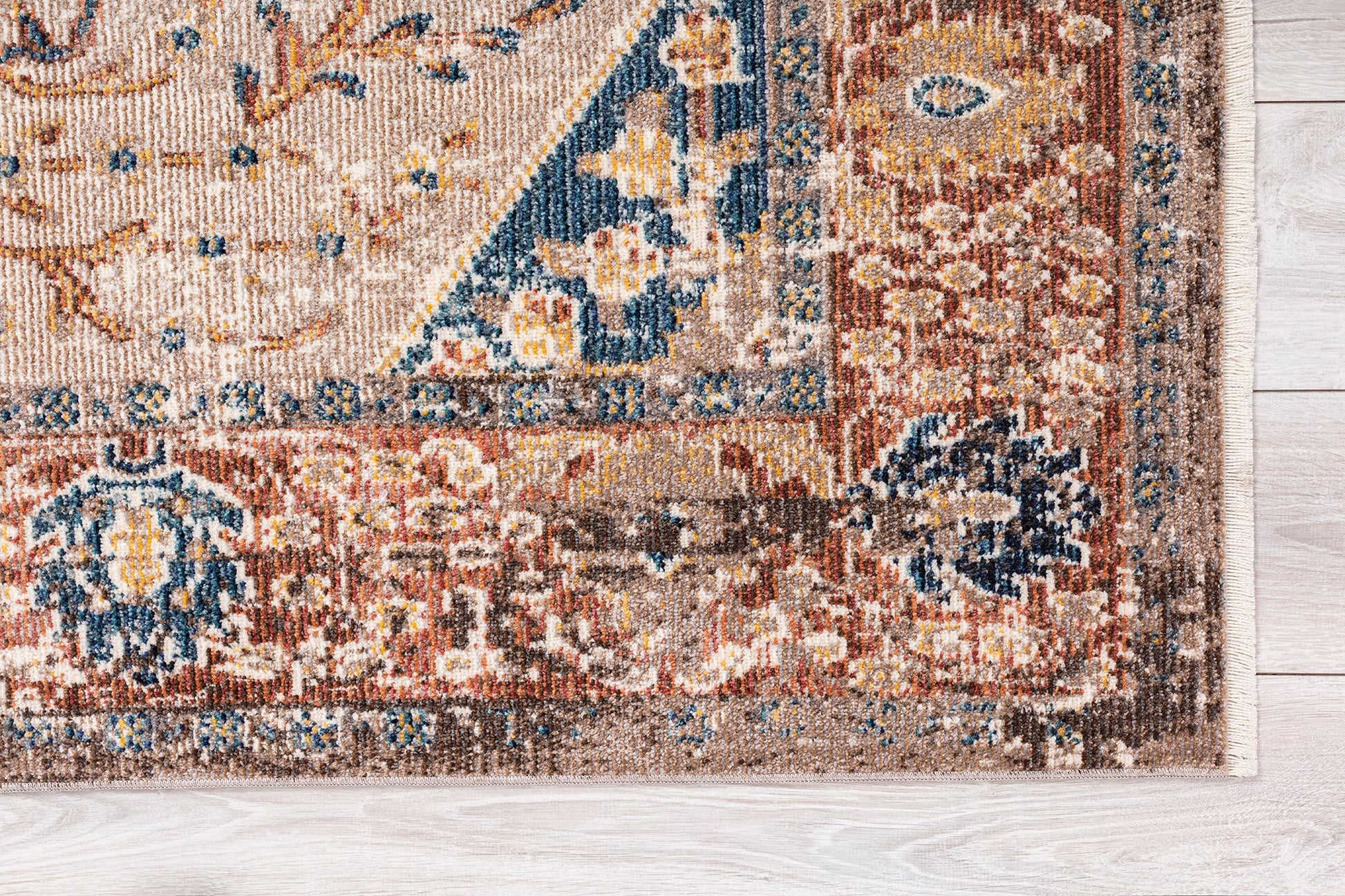 Designed with an old world, antique charm, the Soren collection offers something for home or office. This collection aims to add a contemporary twist to a traditional Turkish pattern. With its transitional style and distressed nature, it is a perfect complement to any space. Those features make them a perfect complement to any room. The Soren Collection is machine made of Polypropylene blend, extremely durable and easy to clean.