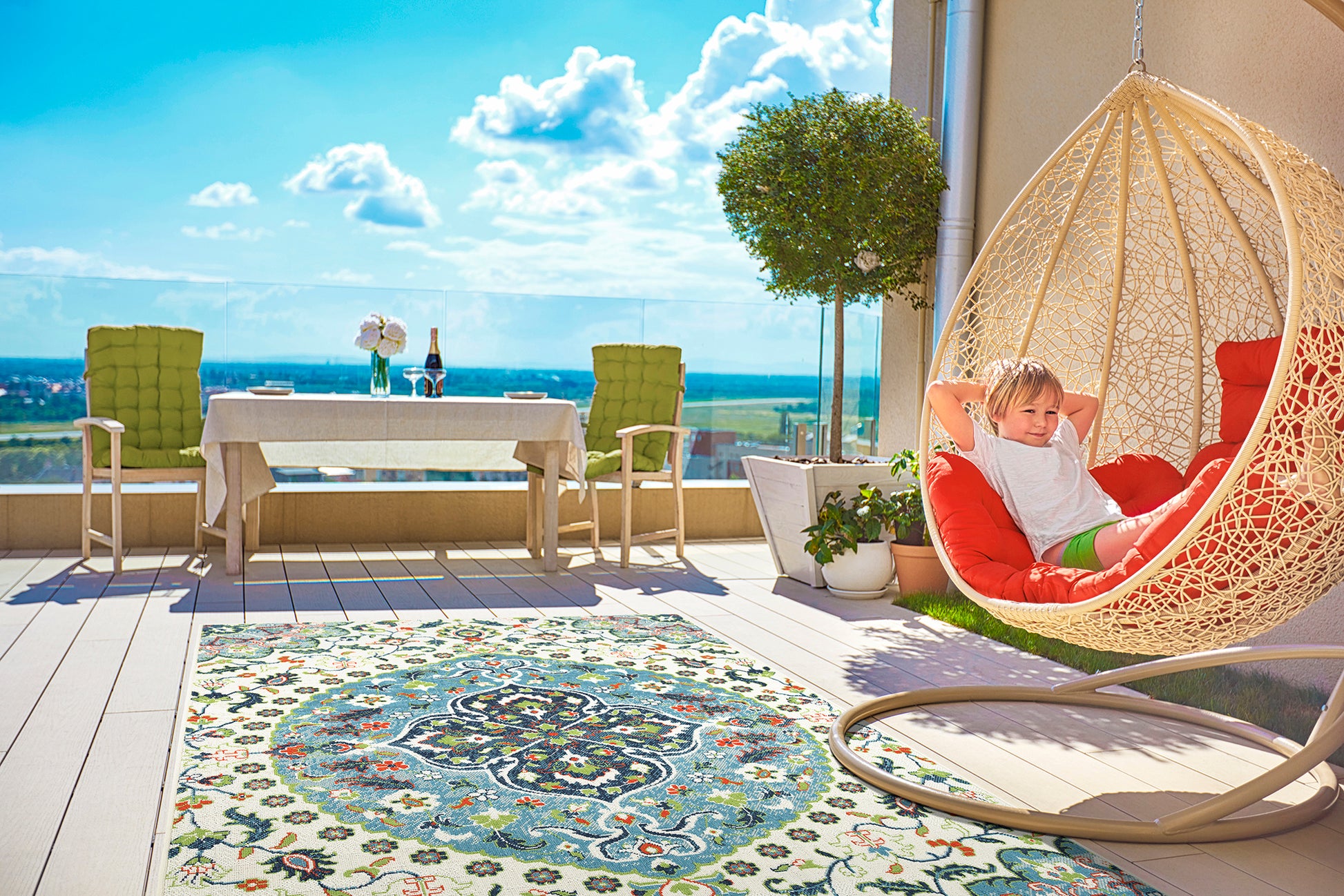 - Residential Indoor / Outdoor Use, UV-Stabilized, Fade and Heat Resistant, Stain Resistant