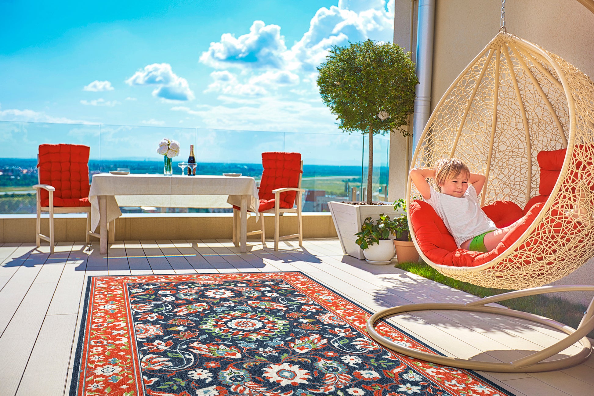The Sunice Collection combines traditional designs reimagined in various contemporary colors. Each rug has been designed to easily integrate into a variety of indoor or outdoor décor styles. Every breathtaking style features dramatic flowering vines, feathery leaves, and flower blooms in today's trendiest colors. Machine-made in Egypt of 100% Polypropylene, the Sunice collection complements any outdoor or indoor space. The durable fibers not only make this collection fade and heat resistant but also tough enough to handle high traffic areas throughout your home.
