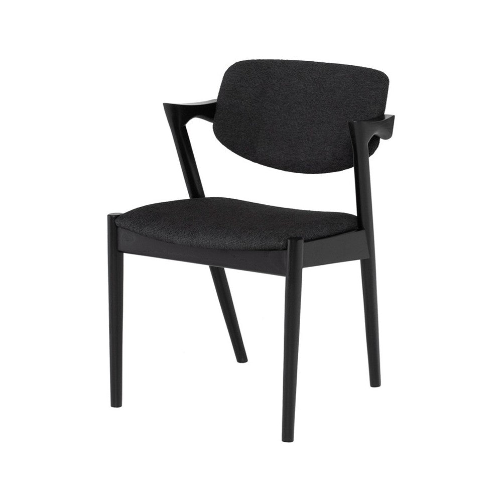 The Kalli dining chair has been masterfully crafted to strike a unique and compelling profile. Its contemporary design features slightly tapered legs in stained Ash that extend to the chair's frame. A smooth backrest and lightly padded seat complement the chair's traditional charm.