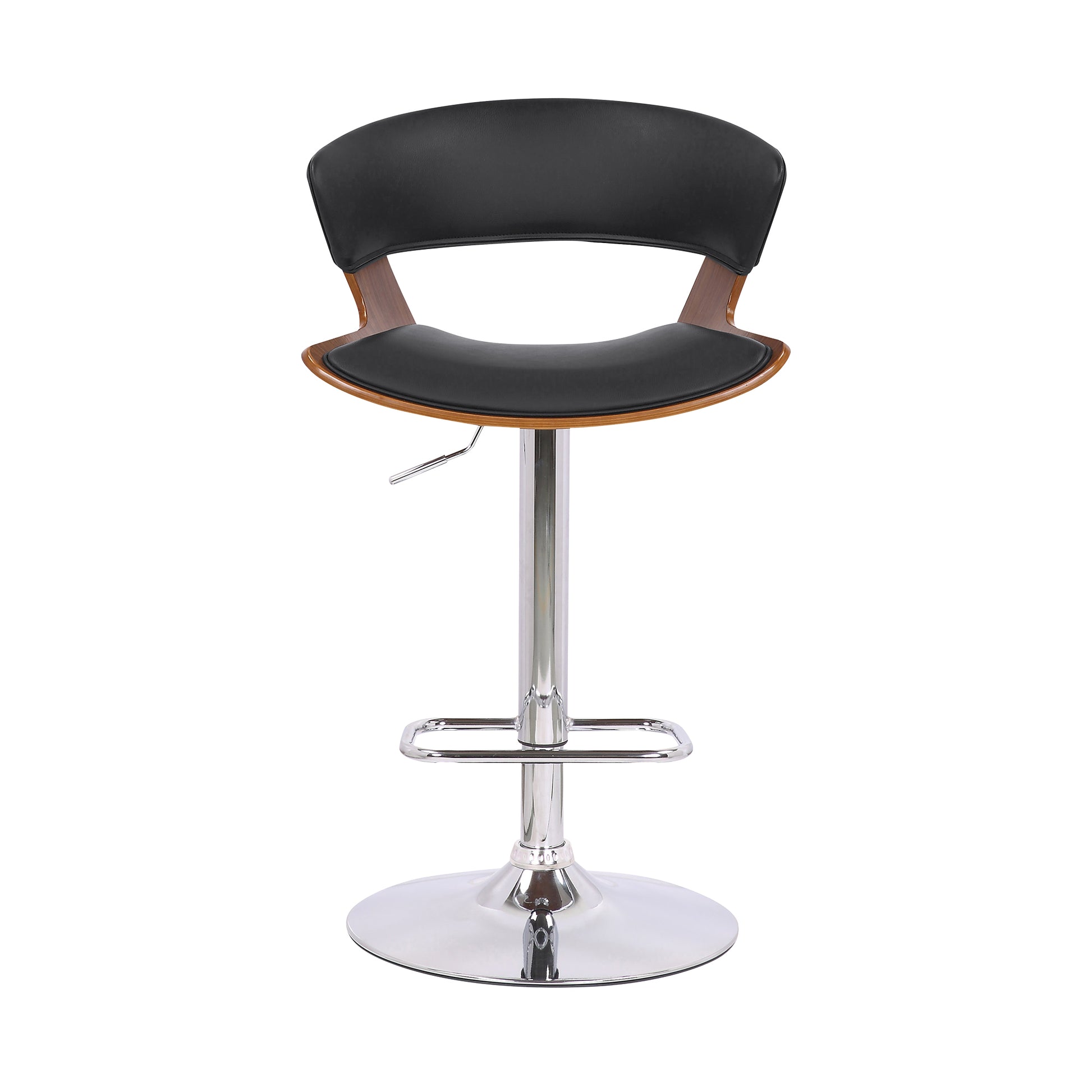 Karine Adjustable Swivel Black Faux Leather and Walnut Wood Bar Stool