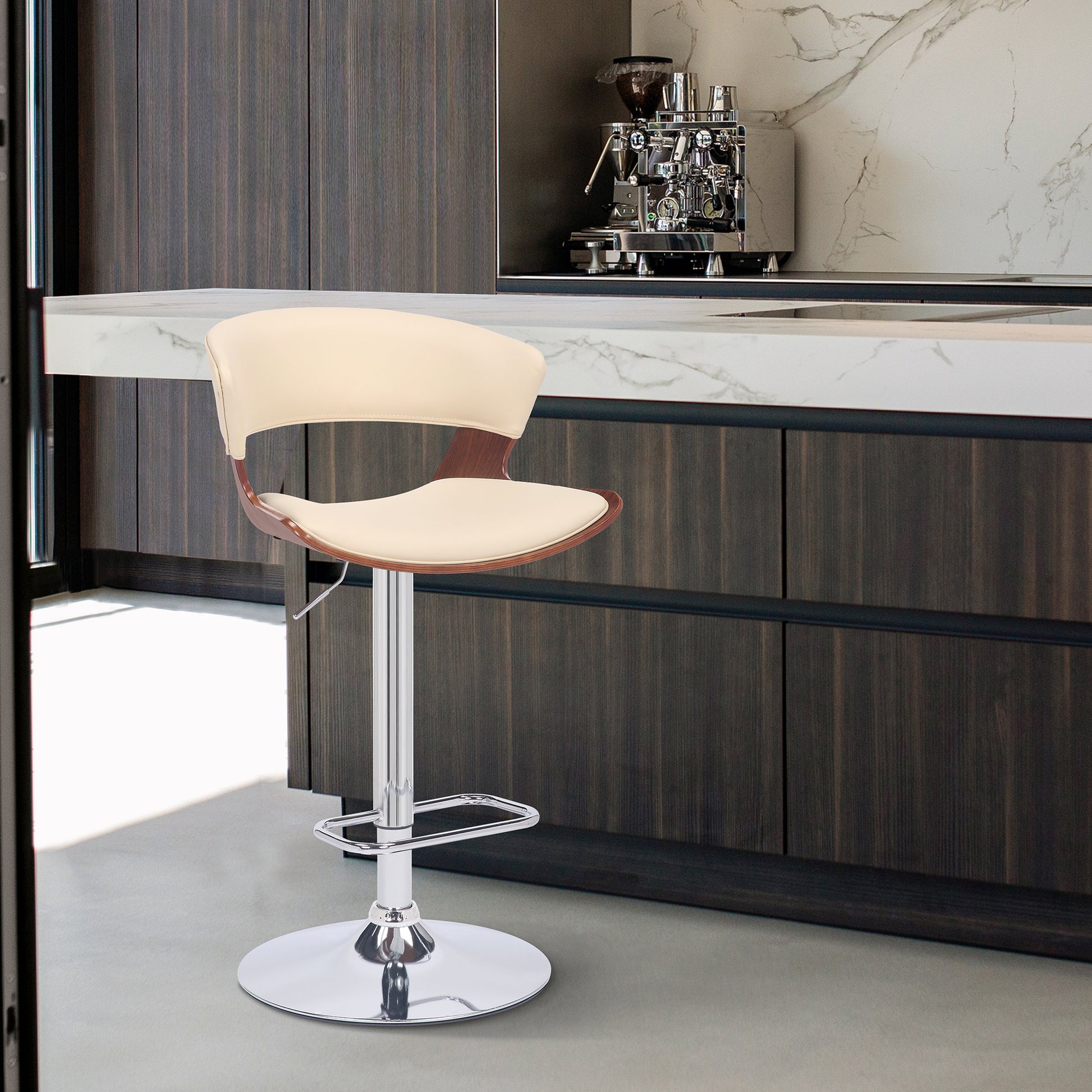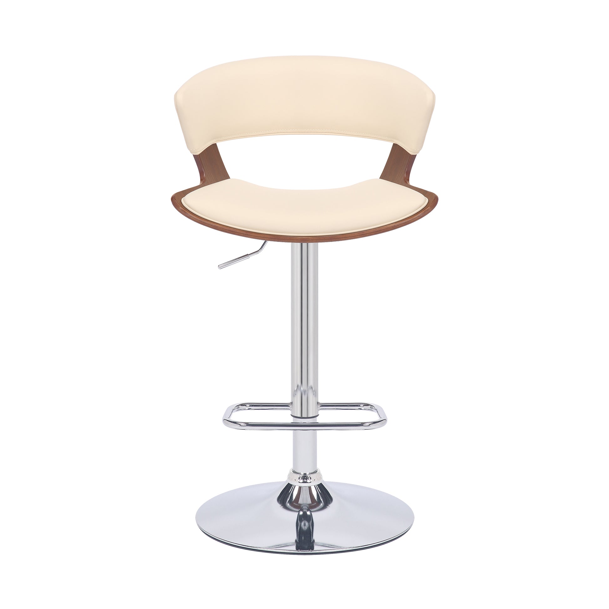 Karine Adjustable Swivel Cream Faux Leather and Walnut Wood Bar Stool