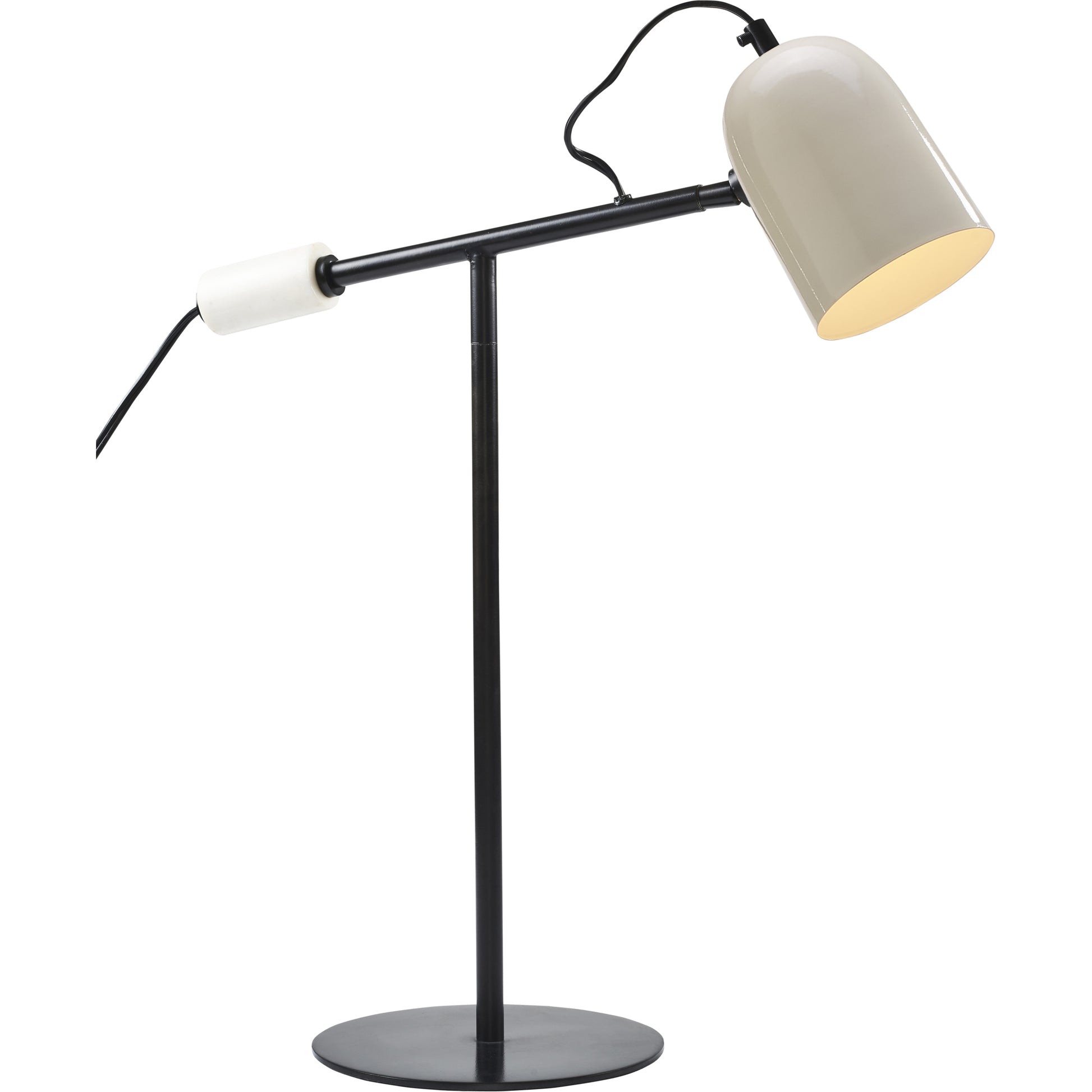 A retro appeal enters the home office interior with this table lamp design. It provides the work day with beaming light while the structure leaves room on the desk for essentials. The black powder-coated iron and ivory powder-coated iron make a mod impression that injects personality into the space.