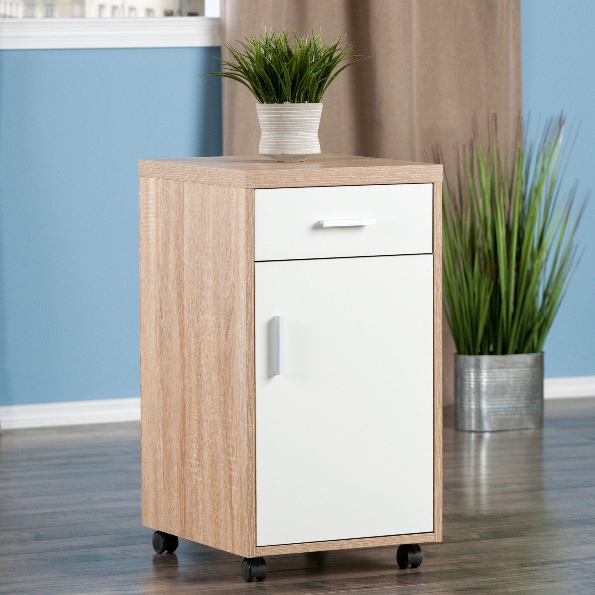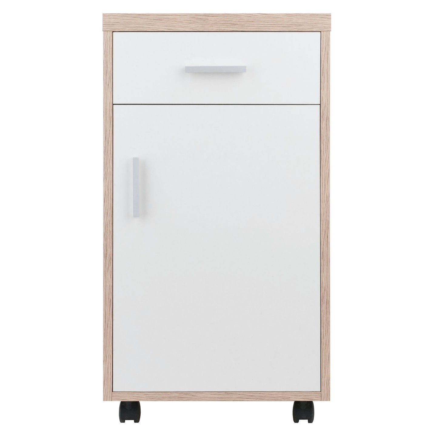 The Kenner Cabinet and Drawer unit is practical and functional on its own or can be combined the Modular Desk Top and with any of the other Kenner Mobile Cabinets to create a customized office or storage console that works for you. The unit is made of durable composite wood with cabinet and drawer facings in a contemporary, linen white finish. The cabinet moves easily on casters, two of which lock.
