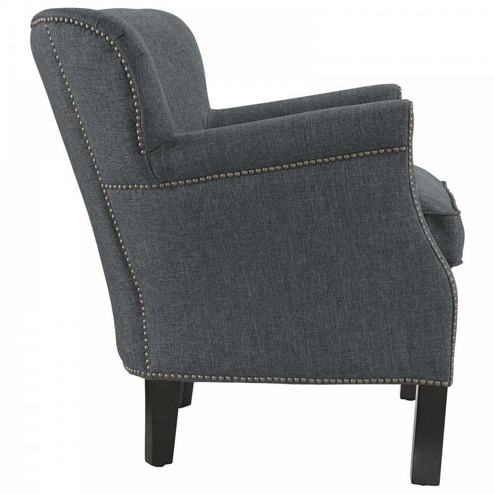 Unlock a charming seating experience with the Key Armchair. Gentle swerves and tailored lines depict a steady, intriguing piece ready for unexpected explorations. Whether reading a favorite book or conversing with friends, Key delivers admirably with dense foam padding, fine polyester upholstery, ornamental nailhead trim, and black stained wood legs. Key works well in vintage, cabin, contemporary, global, and other eclectic spaces.