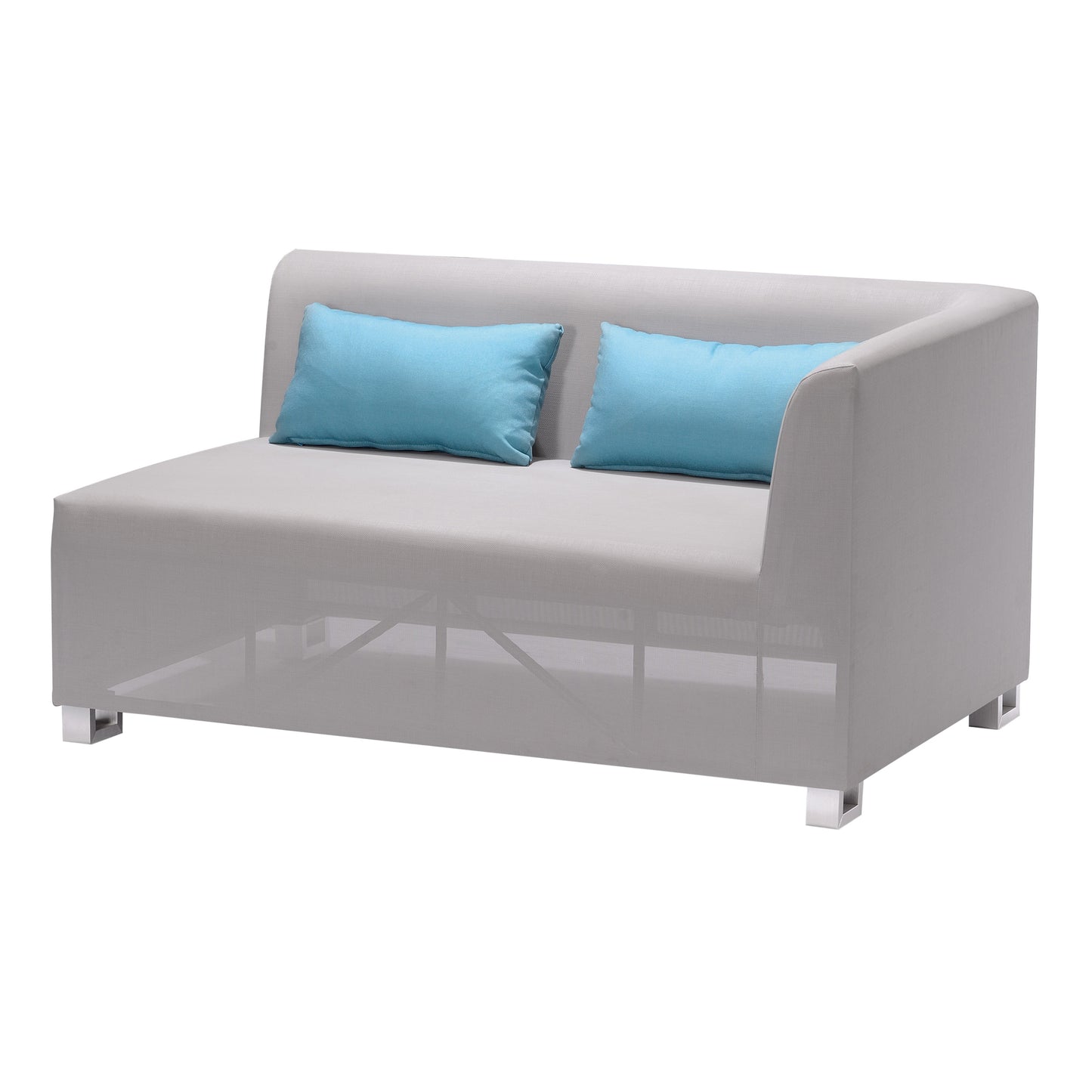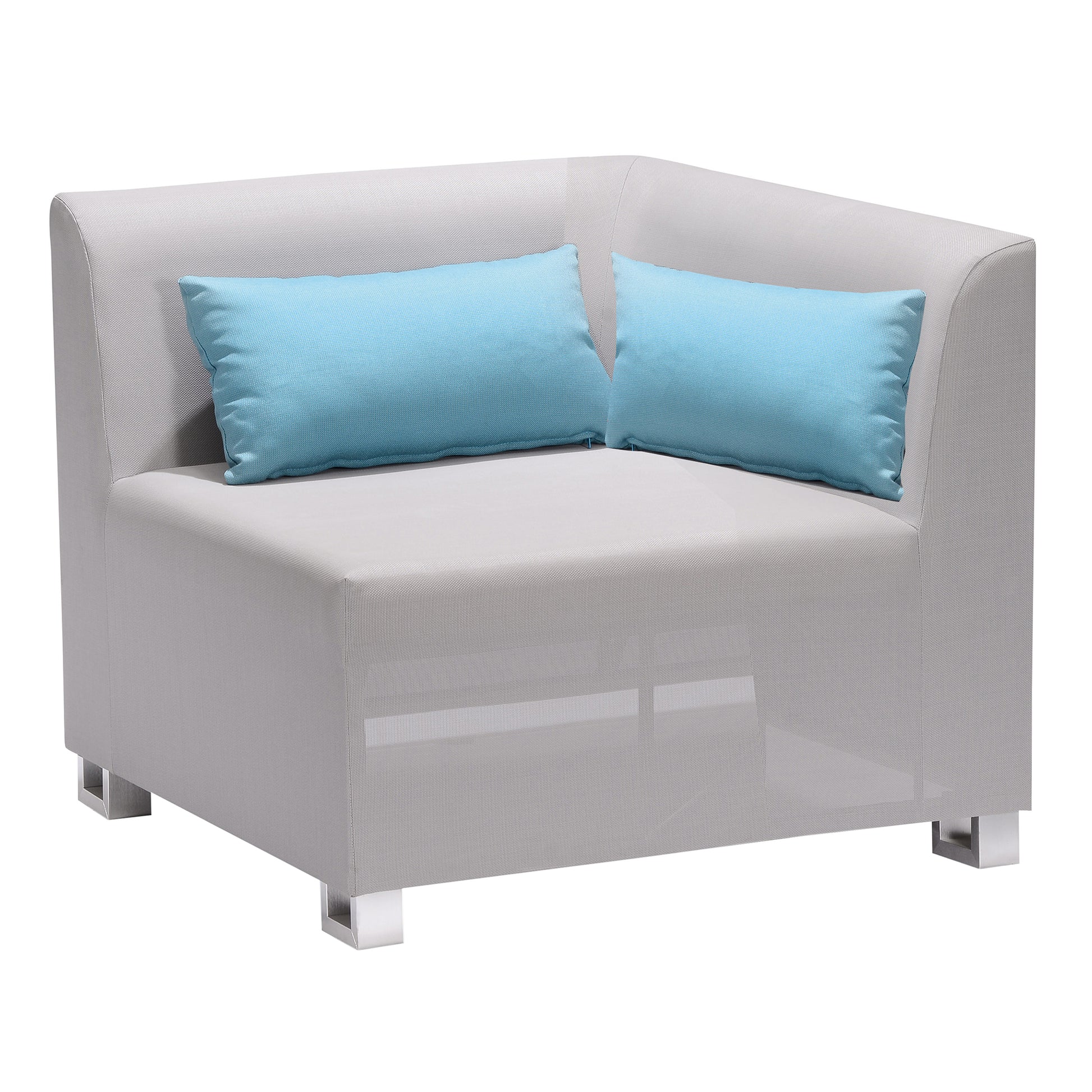 The Armen Living Lagoon contemporary 4-piece sectional set is a truly beautiful addition to any contemporary patio. This brilliant sectional sofa arrangement, complimented by the addition of a chic footstool and 6 plush doll sky blue cotton accent pillows, is artfully designed to be both aesthetically pleasing and exquisitely comfortable. The Lagoon set is upholstered with taupe textilene, an ideal and durable fabric choice for outdoor use. Indulge yourself with the comfort and beauty of the modern Lagoon set today.