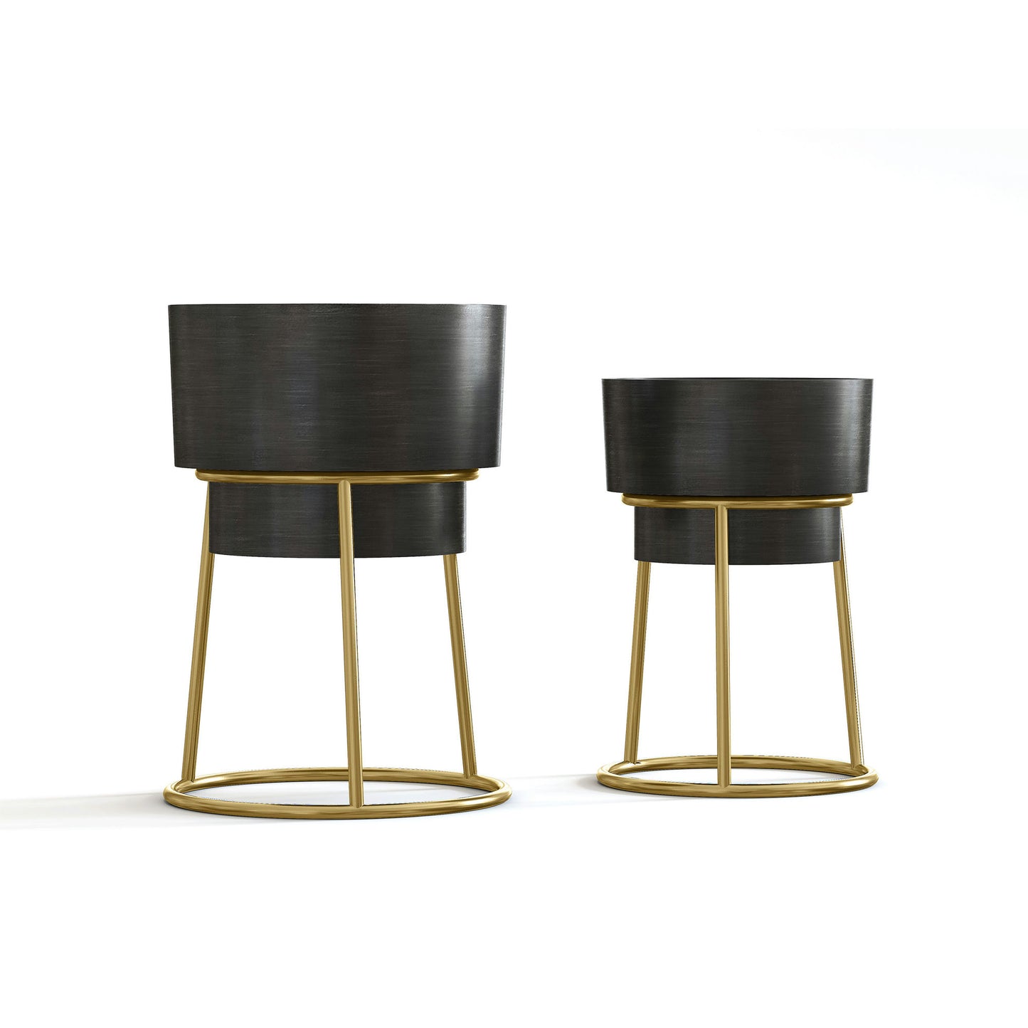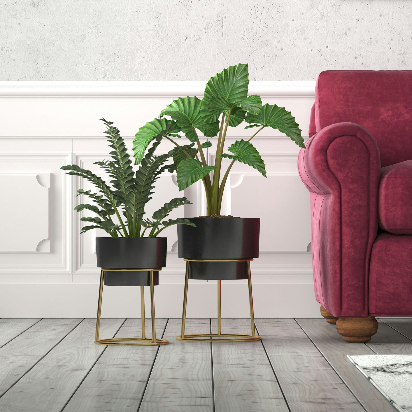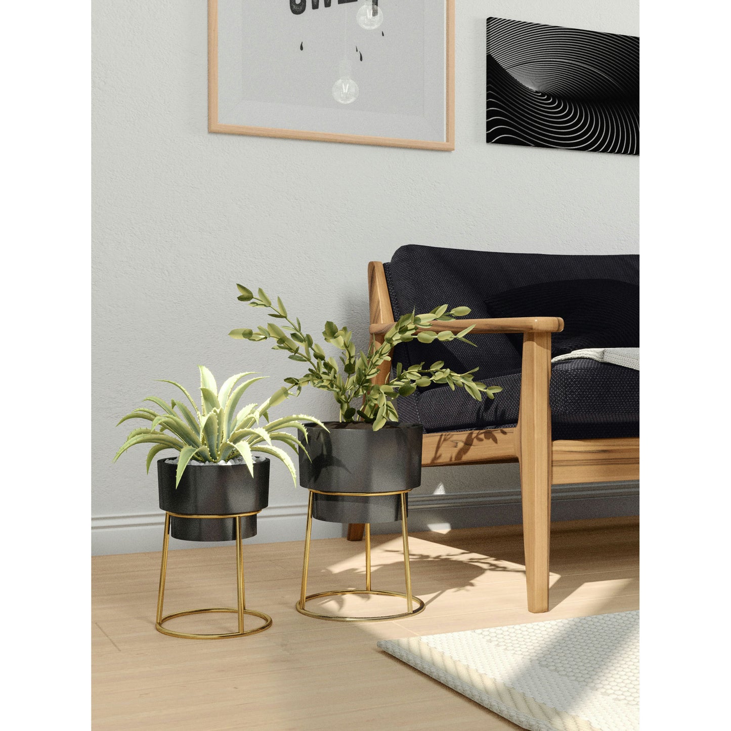 Showcase your favorite plants in style with this set of modern planters. Use them to add height to a table top or give your plants a lift off of the floor. Crafted from metal and featuring an open bottom design for a casual elegance to your decor.