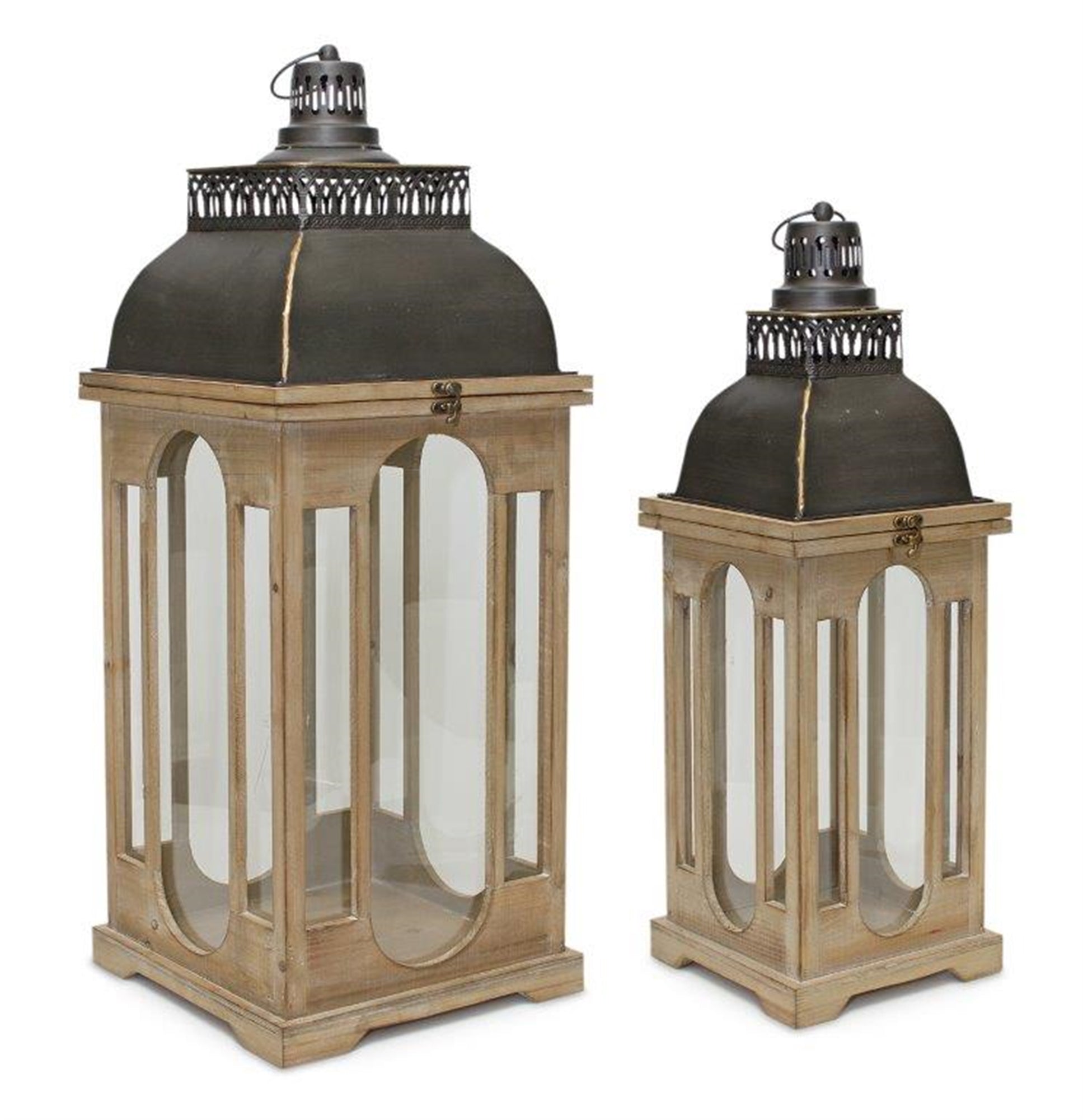 Beautify your home with this traditional set of decorative lanterns. The natural wooden finish paired with the ornate metal lid is the perfect combination to make a timeless piece. The sturdy metal and wood construction is sure to last for seasons to come. Great for both every day and holiday decor, just add a real wax or LED candle to illuminate the piece.