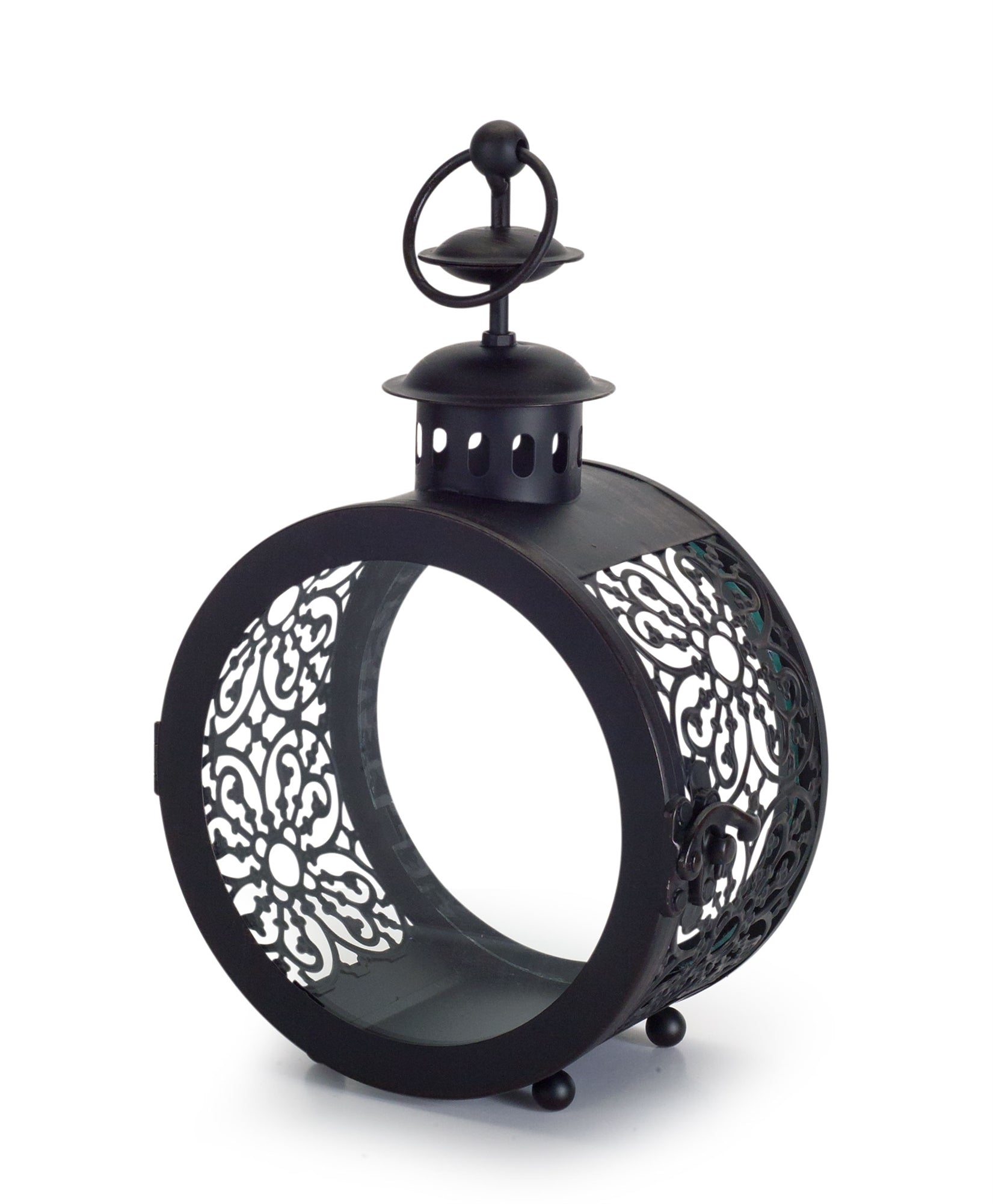 This ornate decorative lantern would look great as a table centerpeice, entryway accessory, or mantle decoration. The classic black finish paired with a traditional yet modern design is the perfect combination to make a timeless piece. The sturdy metal construction is sure to last for seasons to come. Great for both every day and seasonal decor, just add a real wax or LED candle to complete the look.