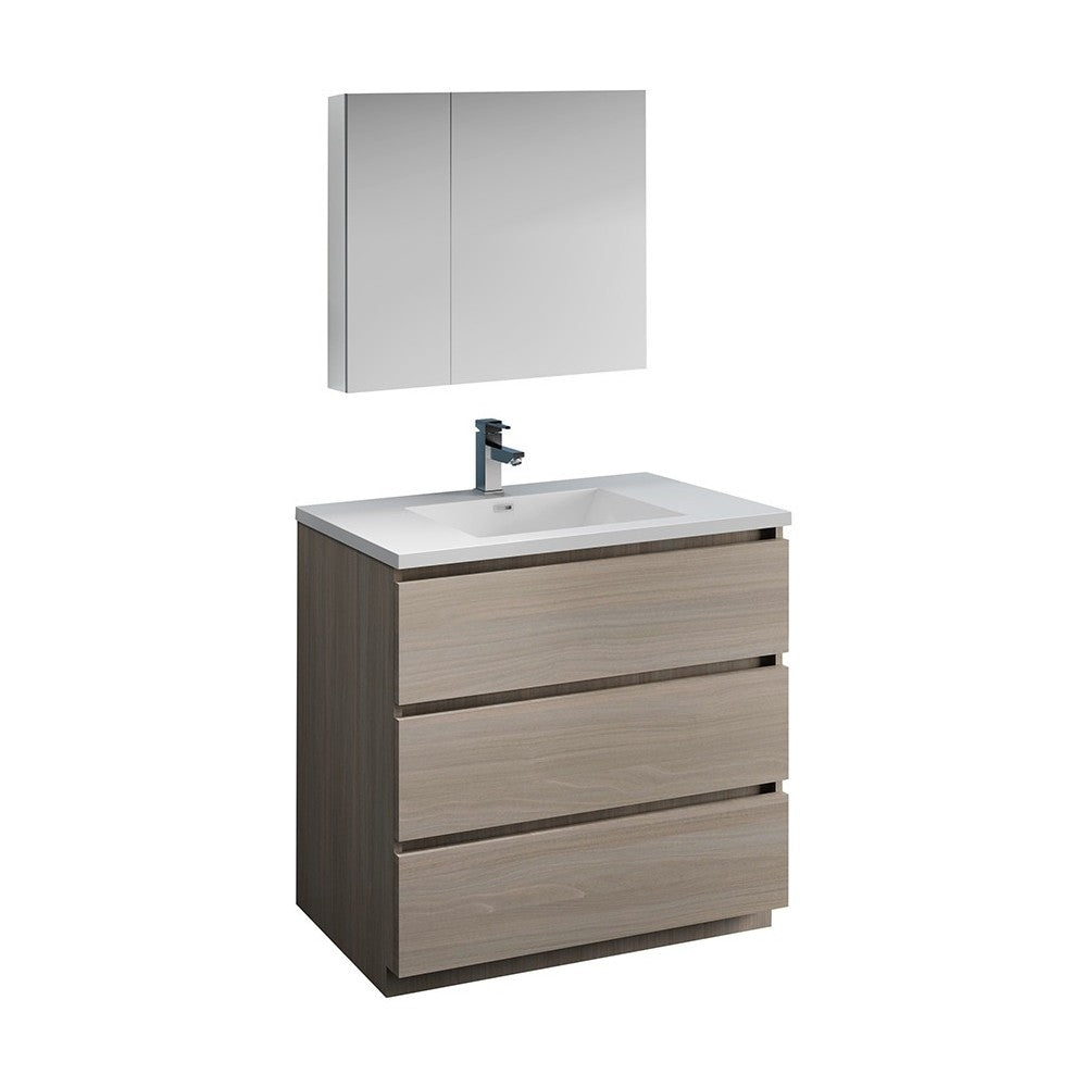 Lazzaro 36" Gray Wood Free Standing Modern Bathroom Vanity w/ Medicine Cabinet