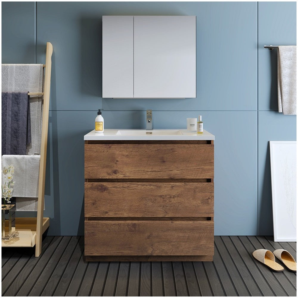 Lazzaro 36" Rosewood Free Standing Modern Bathroom Vanity w/ Medicine Cabinet