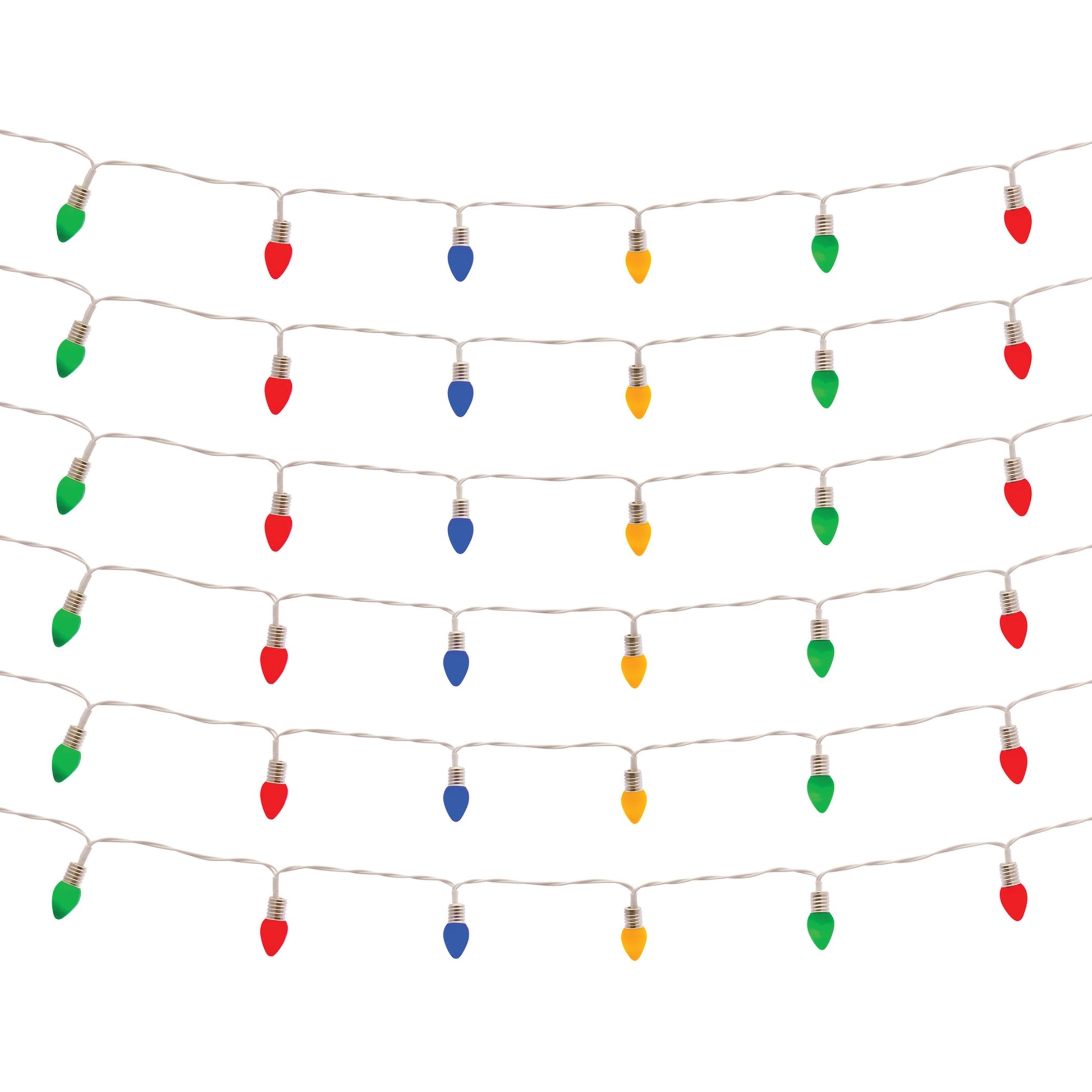 Enhance your holiday home decor with this elegant set of LED Holiday Light Strands. The piece features six stands measuring over 8ft in length each. The stunning lighted multi-colored bulbs makes this set a great addition to any style of Christmas decor. Add the strand to your Christmas tree to give it additional lighting, or hang from your mantle to add interest to your living space. Requires 3 AA batteries (not included).