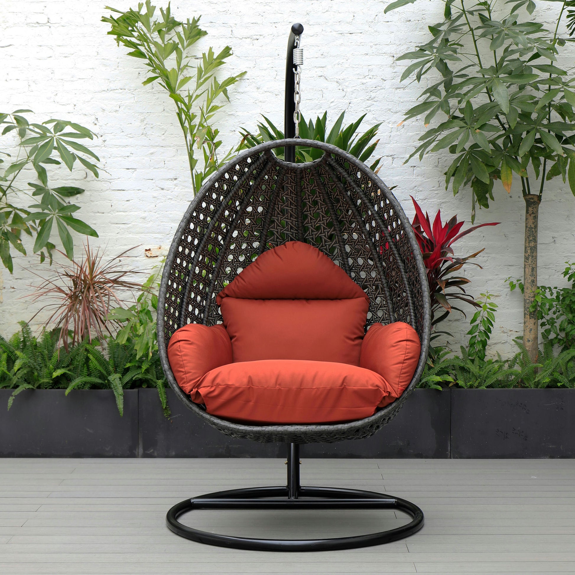LeisureMod Charcoal And Cherry Wicker Hanging Egg Swing Chair