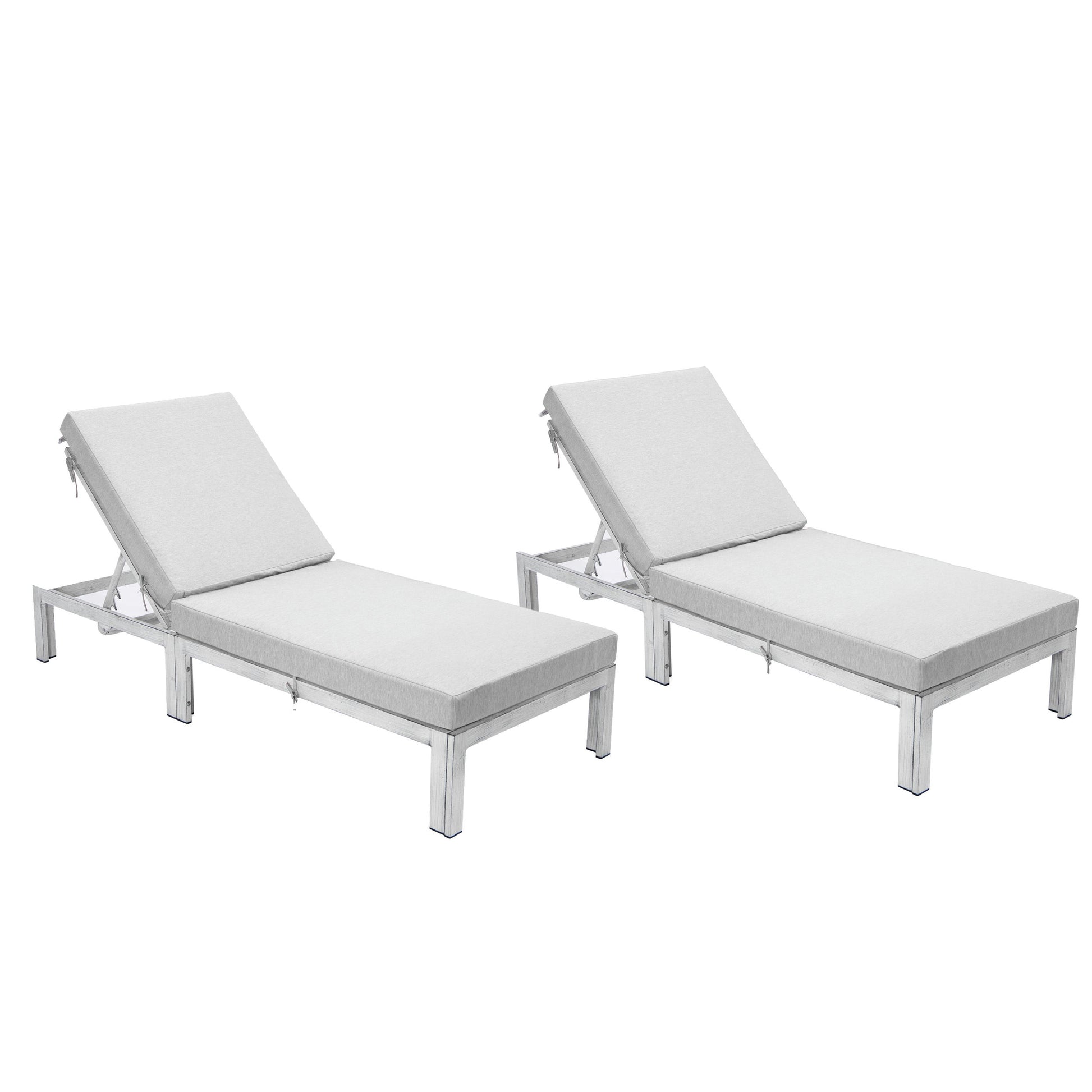 LeisureMod Chelsea Outdoor Chaise Lounge Chair w/Cushions Set of 2, Light Grey