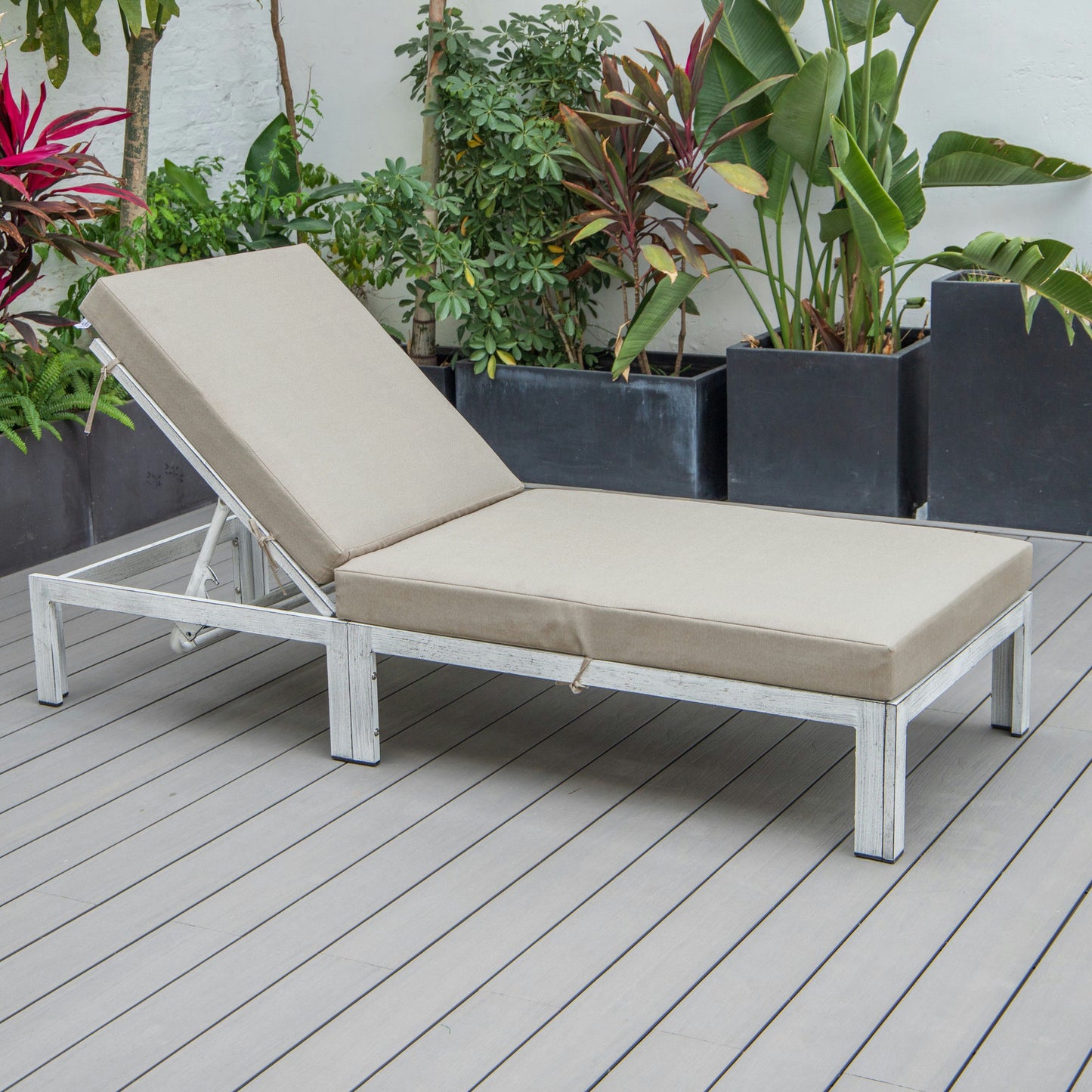 LeisureMod Chelsea Outdoor Grey Chaise Lounge Chair With Cushions- Beige