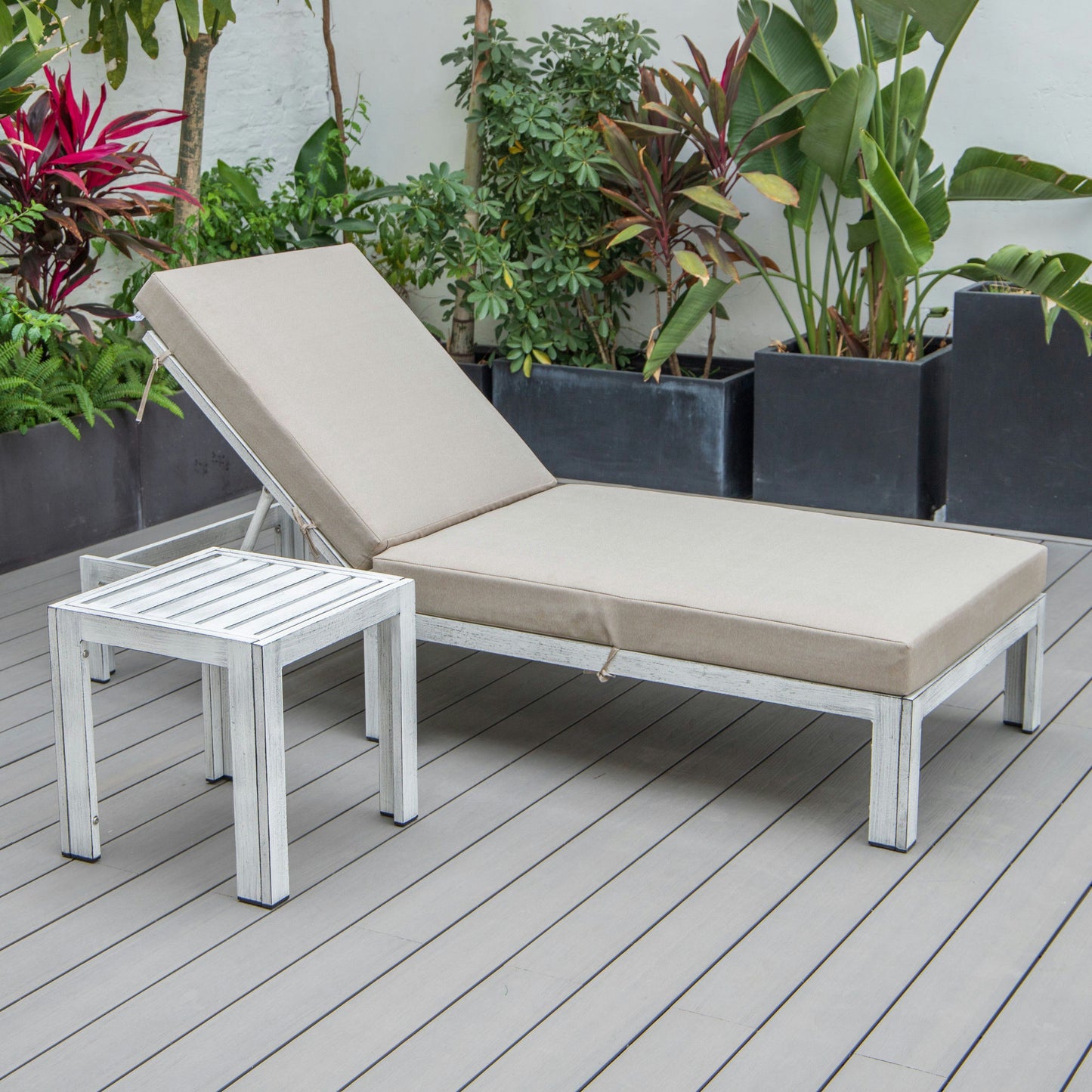 LeisureMod Chelsea Outdoor Grey Lounge Chair With Side Table & Cushions - Beige