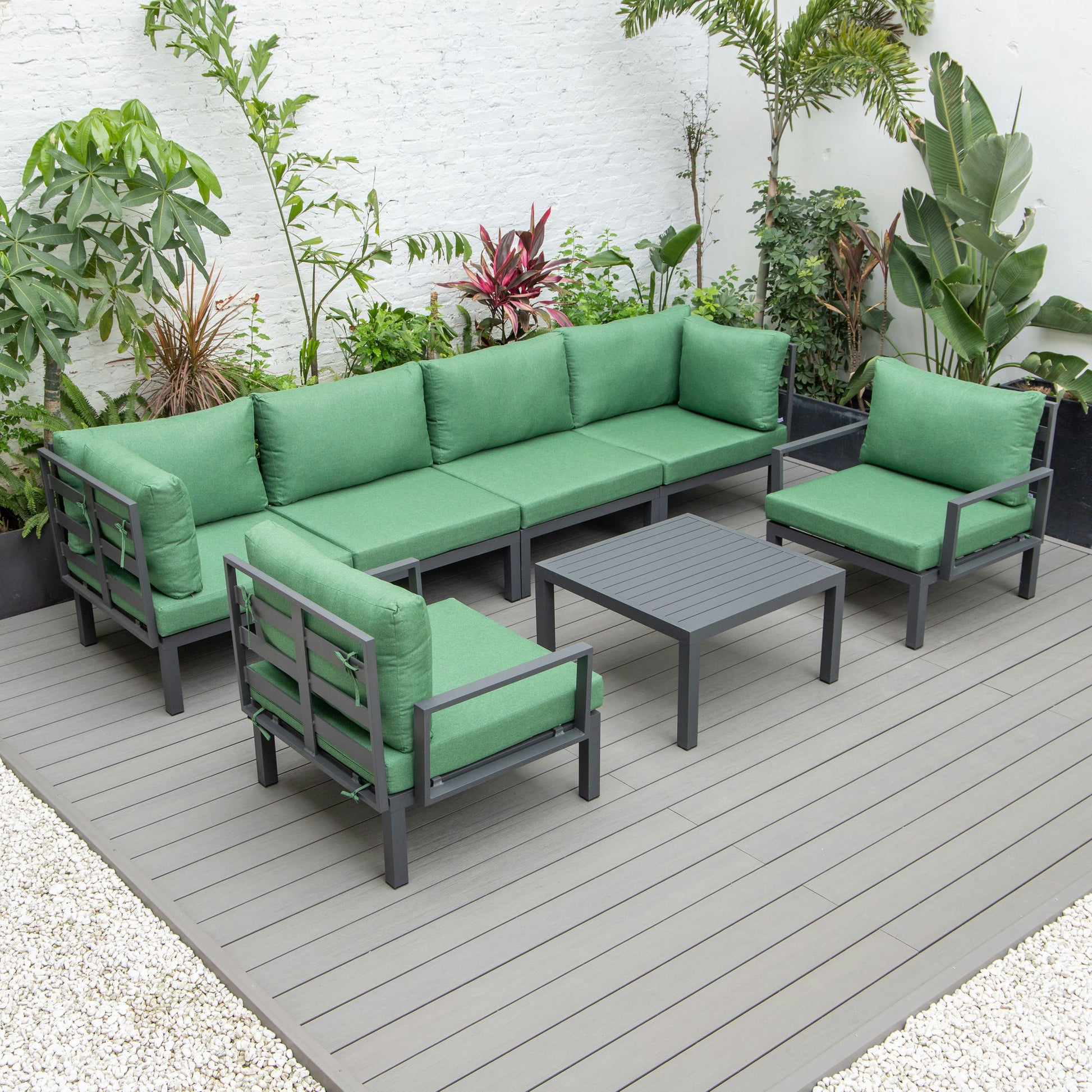 LeisureMod Hamilton 7-Piece Conversation Set With Coffee Table - Green