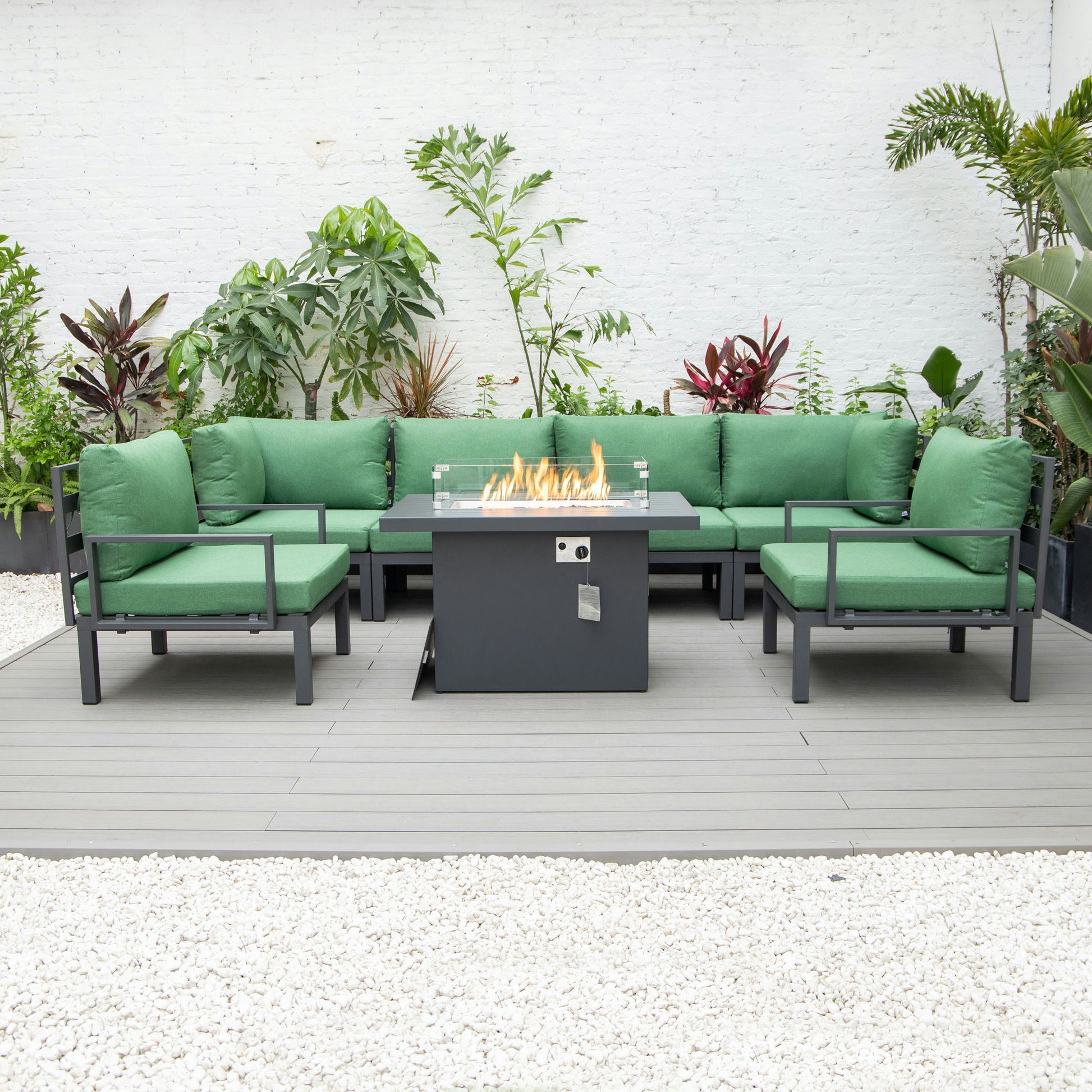 LeisureMod Hamilton 7-Piece Conversation Set With Fire Pit Table - Green