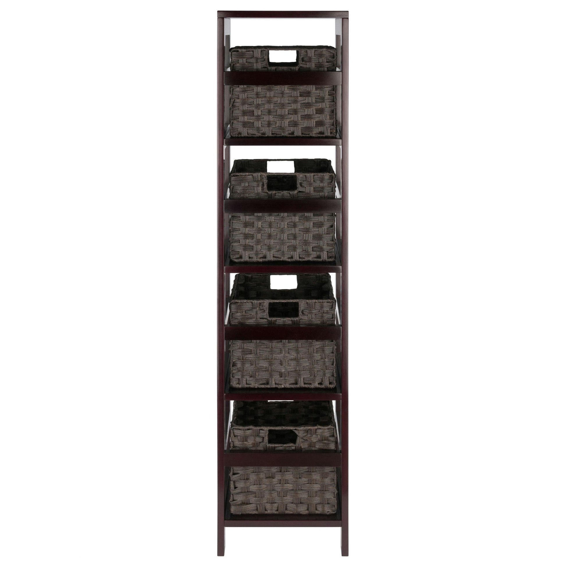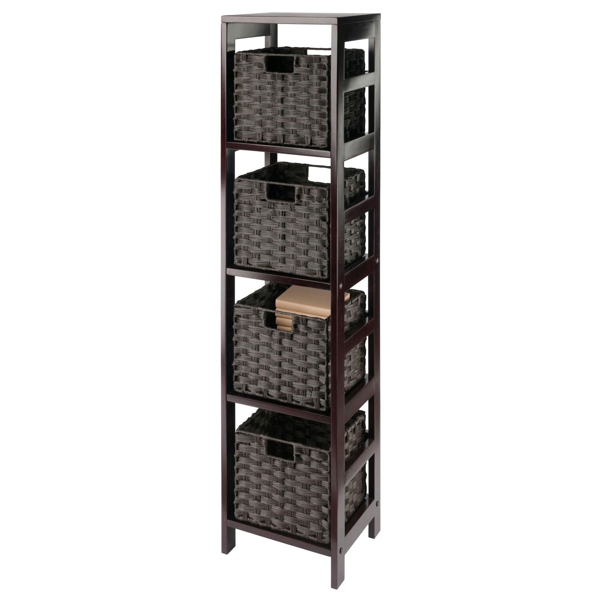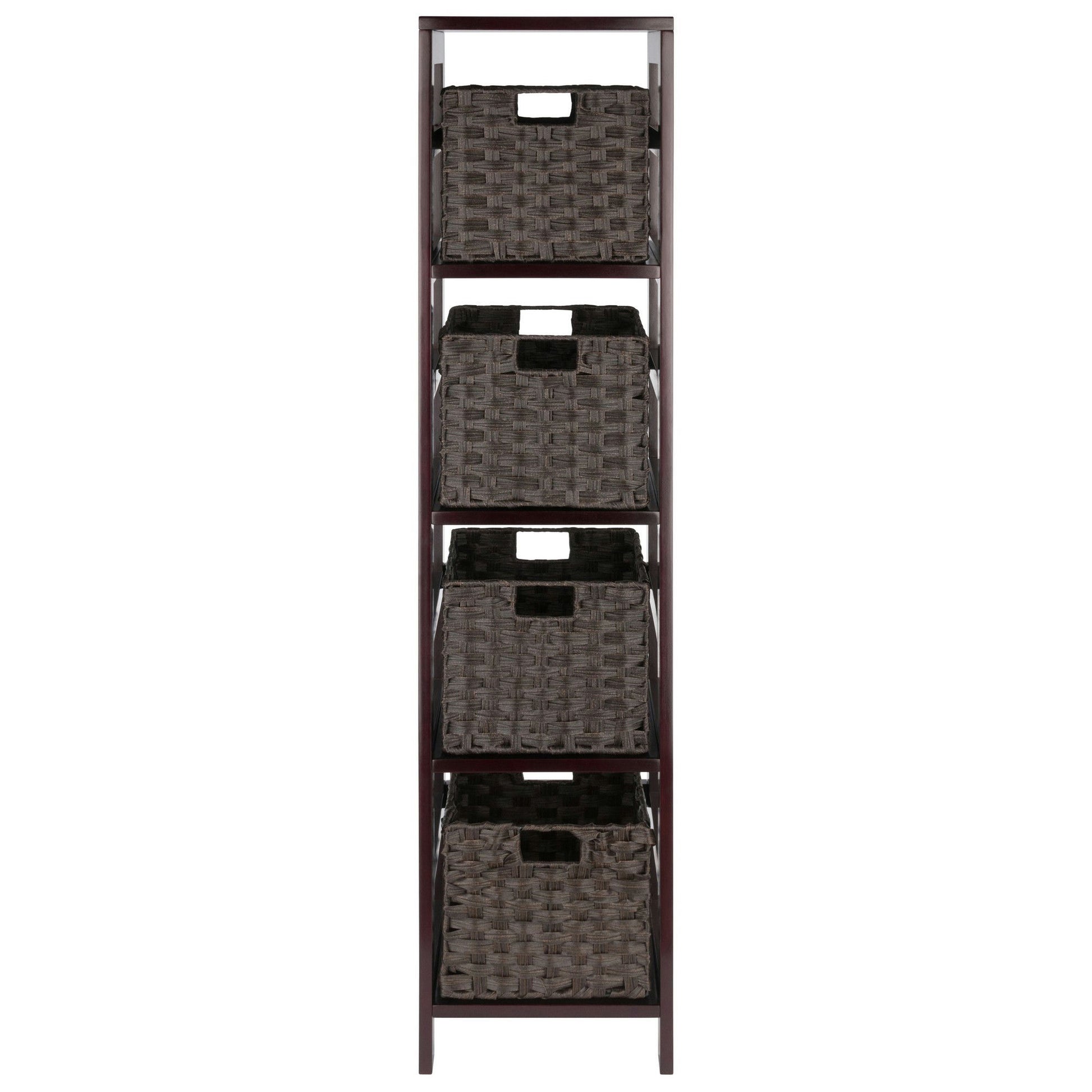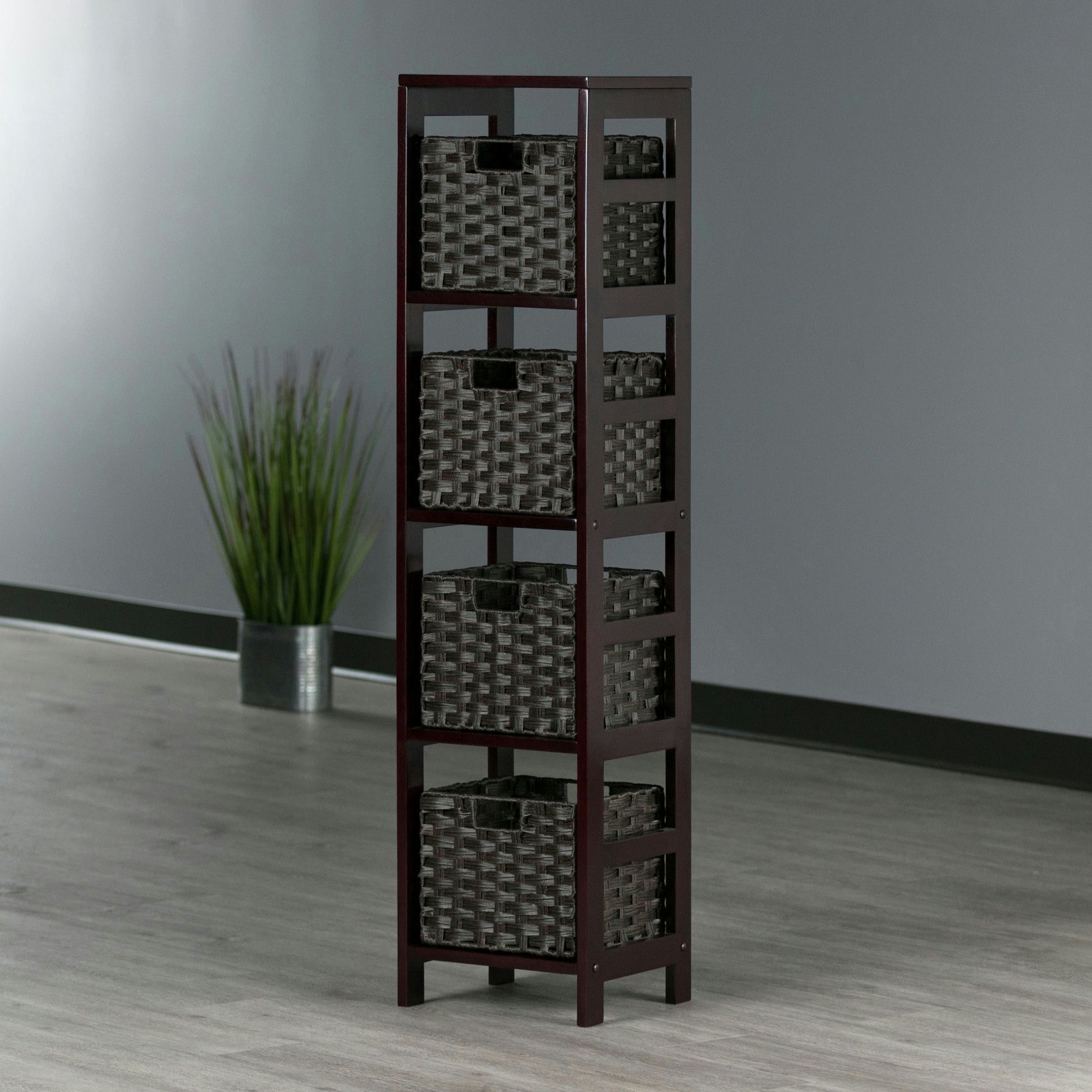 Leo 5-Pc Storage Shelf with 4 Foldable Woven Baskets, Espresso and Chocolate