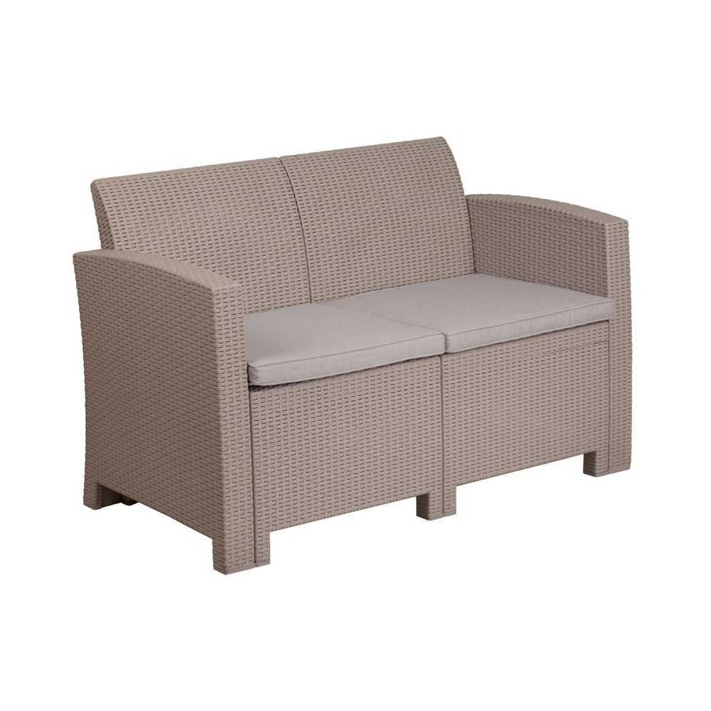 Create an amazing outdoor space with this comfortable and stylish light gray patio loveseat. The durable resin frame offers a stylish appearance which replicates rattan. Deep seating enhances the comfort level. Light gray all-weather cushions will hold up all season long. Clean spills with a water-based cleaner or the cushions are zipper removable for washing purposes. Curl up with your latest read, or just relax and enjoy the outdoors with family and friends and create lasting memories! [DAD-SF2-2-GG]