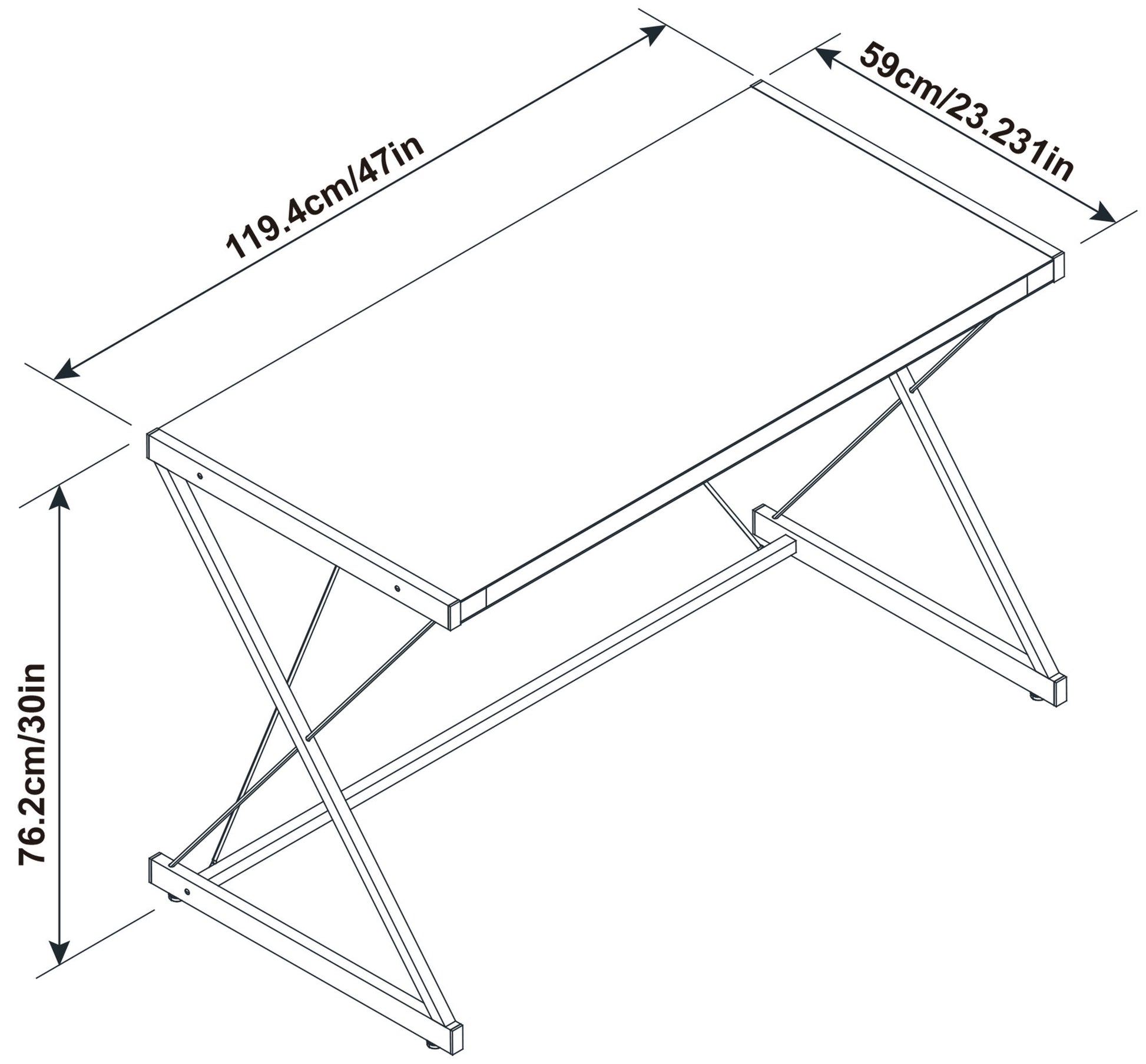 This modern design laptop desk with its Z design metal legs is sure to make a statement in any room. Available in Light Oak and Dark Oak finish tops.