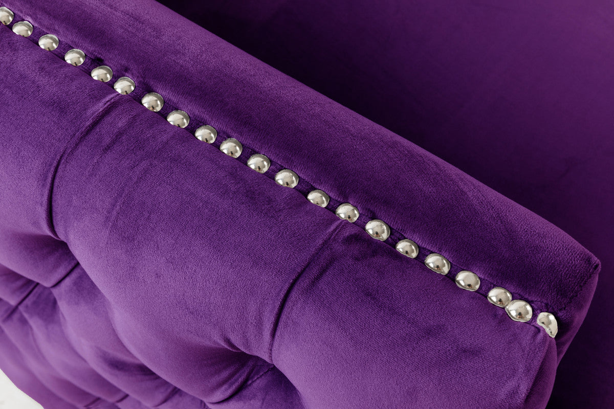 Lilola Home Bayberry Purple Velvet Sofa with 3 Pillows