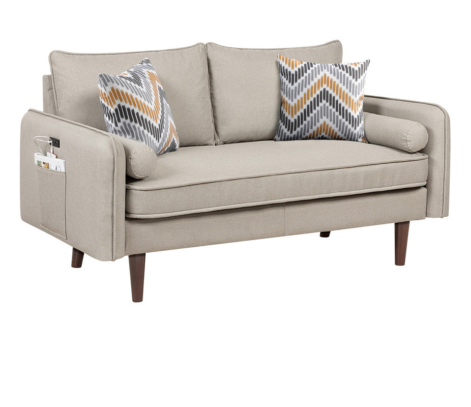 Lilola Home Mia Beige Linen Loveseat Couch with USB Charging Ports & Pillows